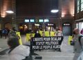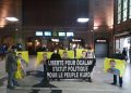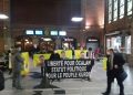 Tren yolcularının geçiş güzergahında gerçekleştirilen eylem sloganlarla sona erdi.
