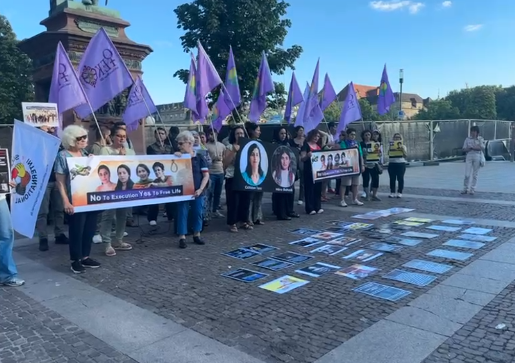 Katledilen gazetecilerin ve İran devleti tarafından idam cezasına çarptırılan aralarında Pexşan Ezîzî ve Şerife Muhammedî’nin fotoğraflarının olduğu pankartlar açıldı.