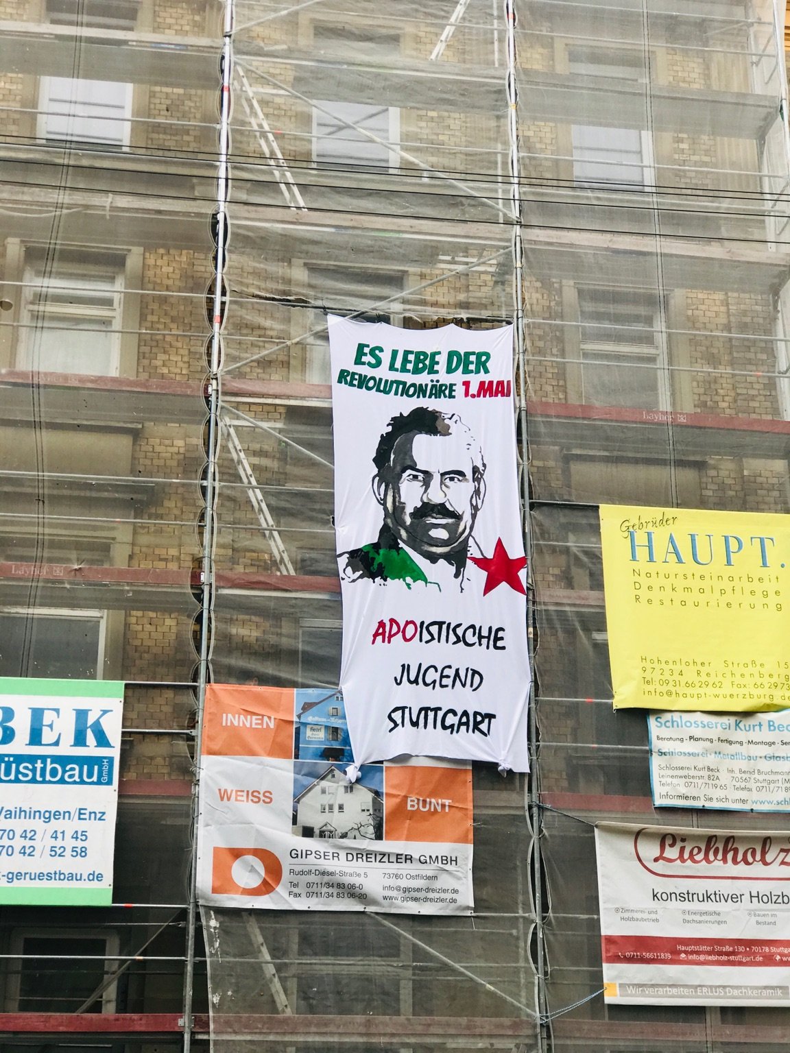 STUTTGART – Almanya’nın Stuttgart kentinde bir araya gelen yüzler, 1 Mayıs İşçi ve Emekçilerin Birlik, Mücadele ve Dayanışma Günü’nü büyük bir yürüyüş ile kutladı. Oldukça coşkulu geçen yürüyüşte, yürüyüş güzergahına asılan Halklar Önderi Abdullah Öcalan’ın dev posteri büyük ilgi gördü.