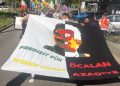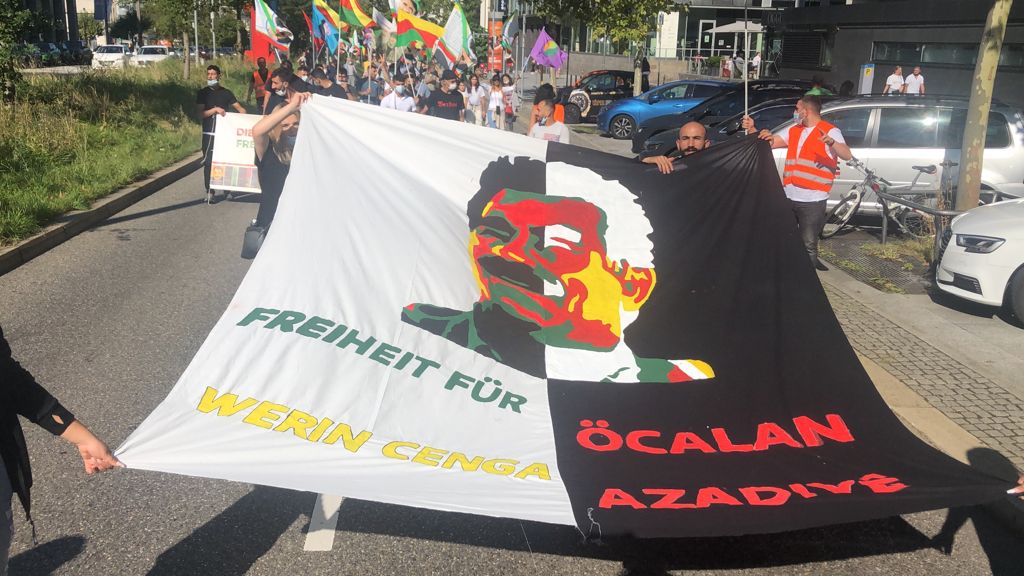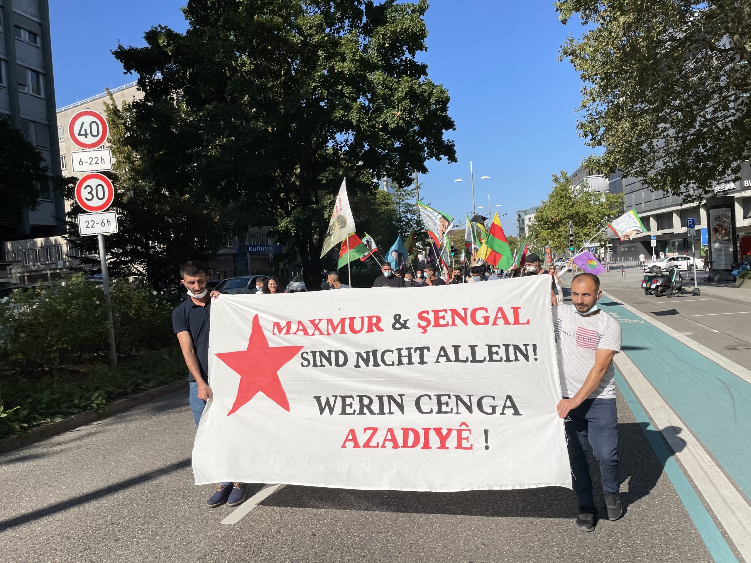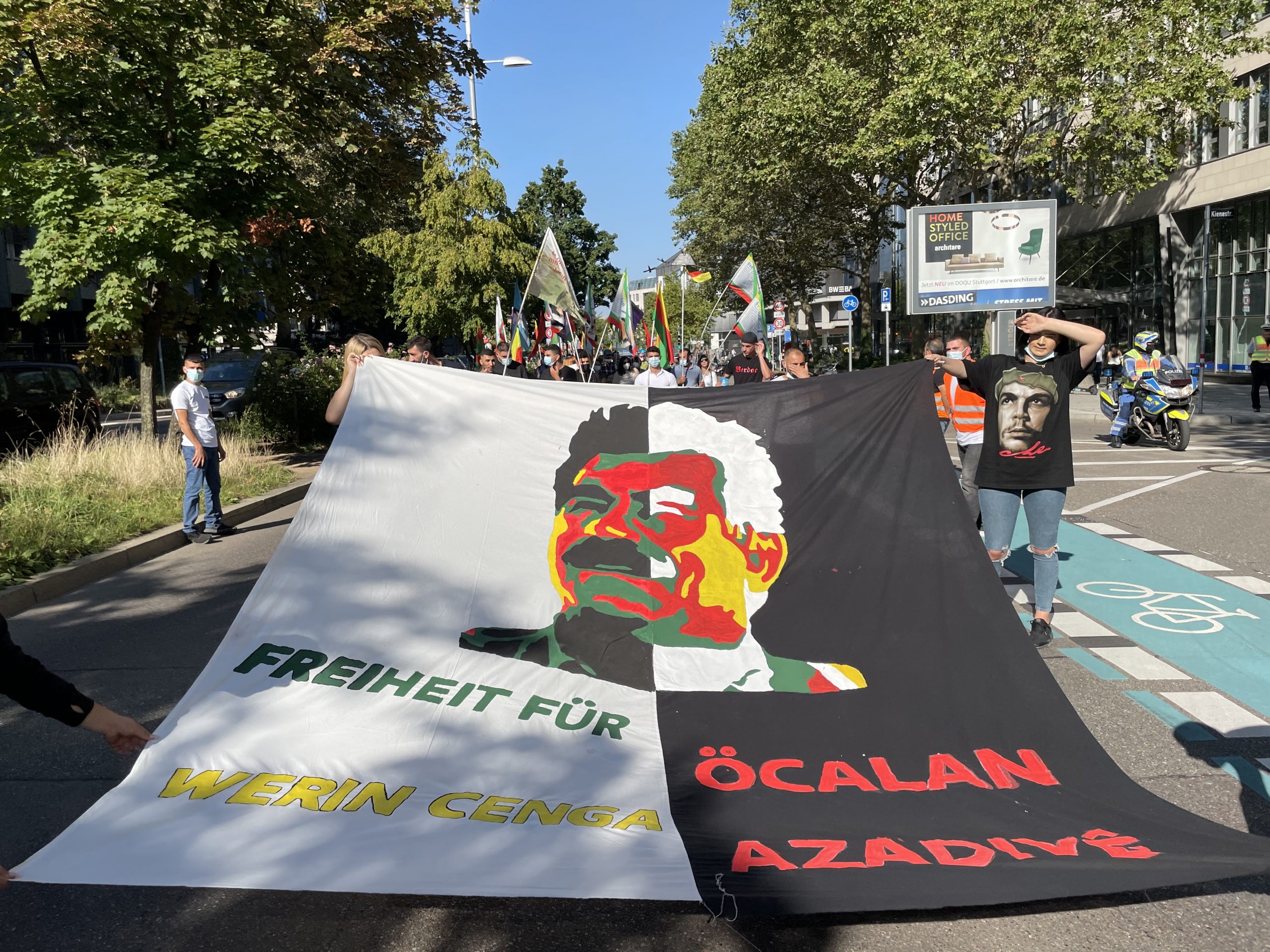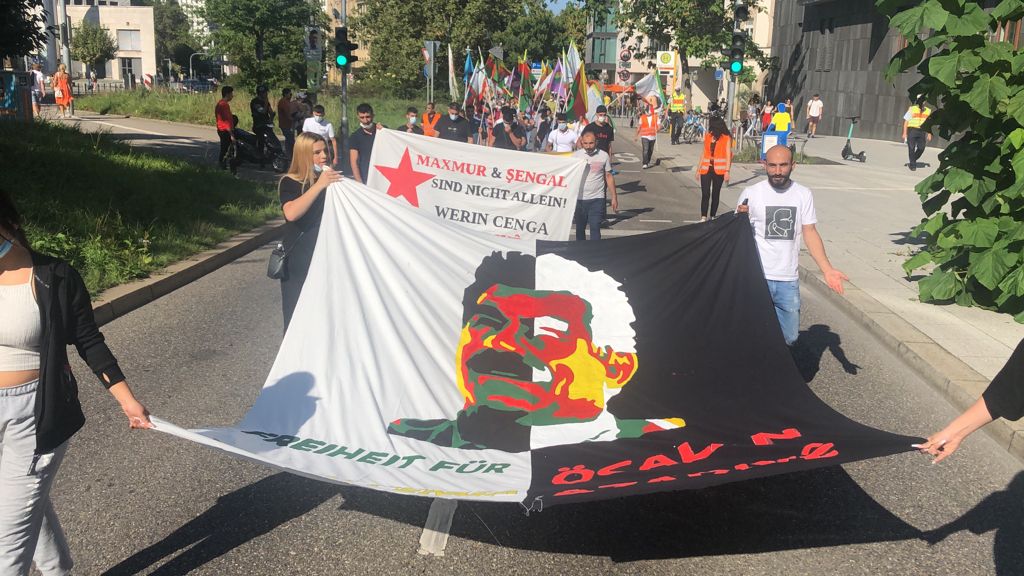 STUTTGART – Stuttgart merkezi tren istasyonu önünde bir araya gelen kitle Kürdistan Devrim Şehitleri anısına bir dakikalık saygı duruşunun ardından yürüyüşlerine başladılar.