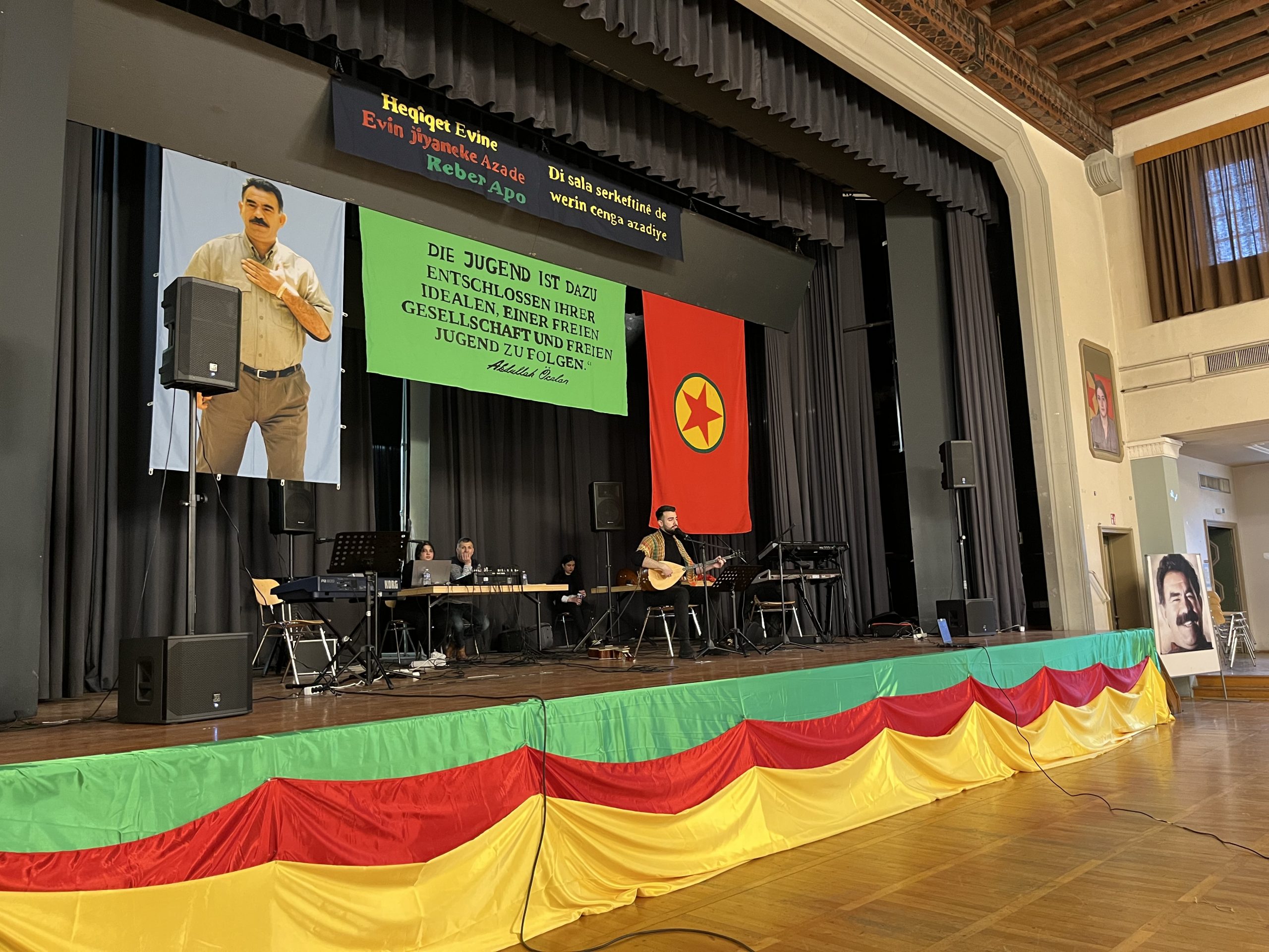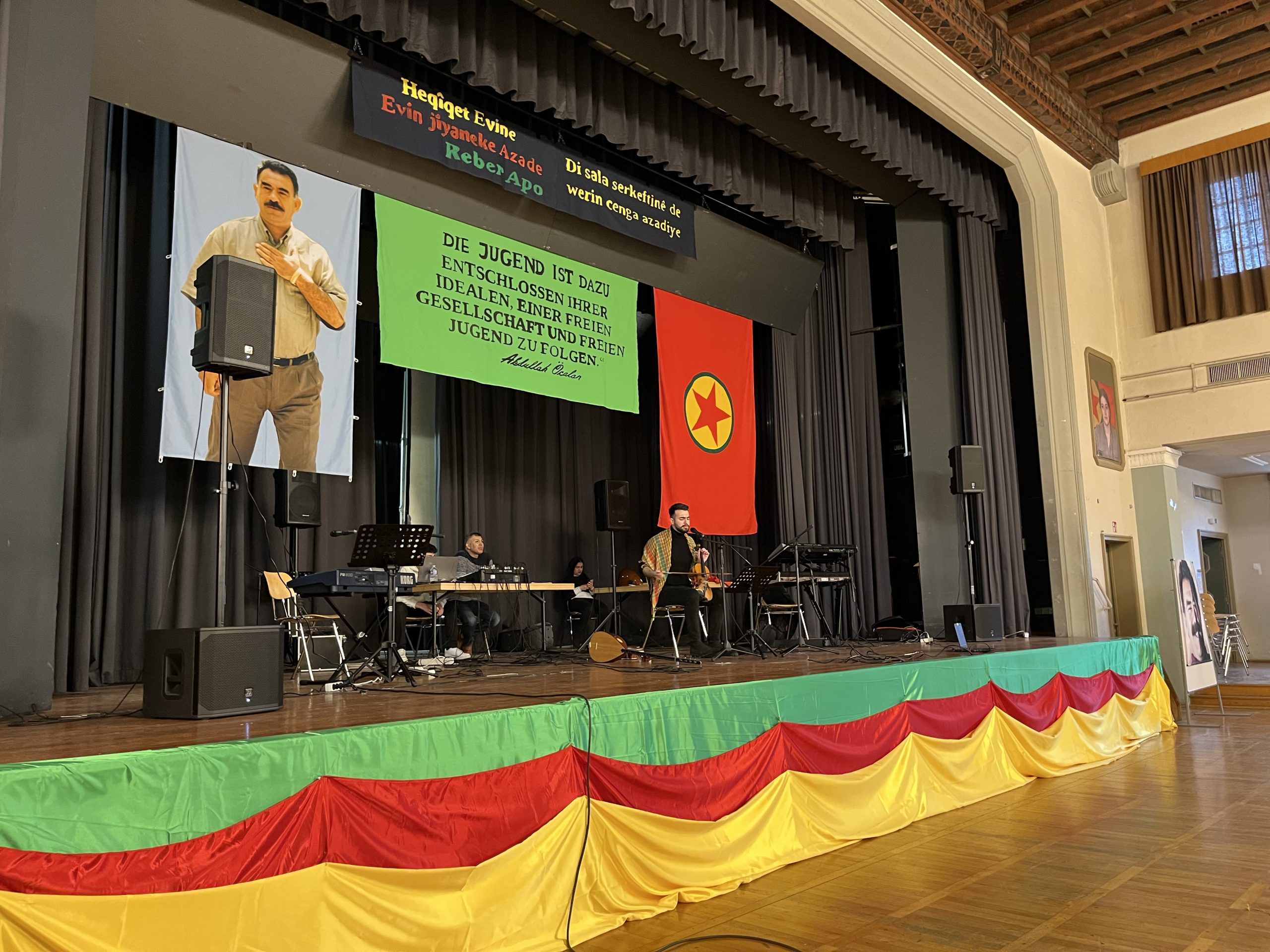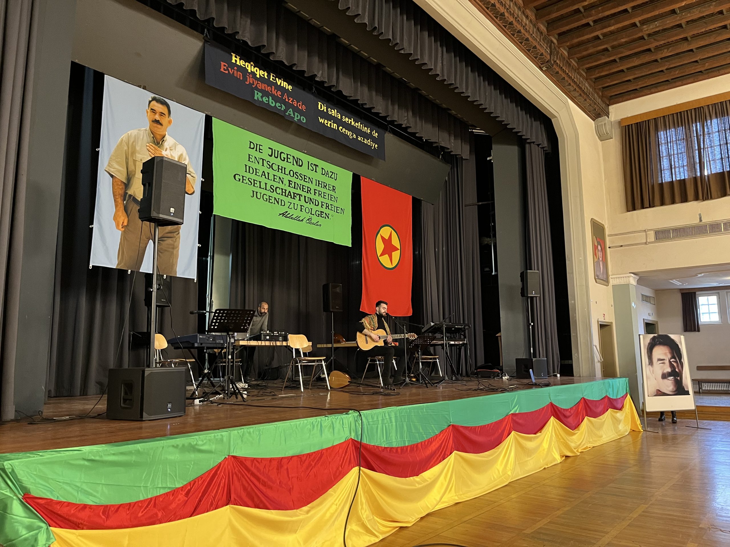 Konser salonu içerisinde TCŞ ve TekoJIN aktivisleri öncülüğünde Önder Öcalan‘ın kitaplarının olduğu, üzerinde „Werin Cenga Azadiyê“ yazılı tişörtler ve çeşitli eşyaların bulunduğu bir çok sayıda stantlar da açıldı.