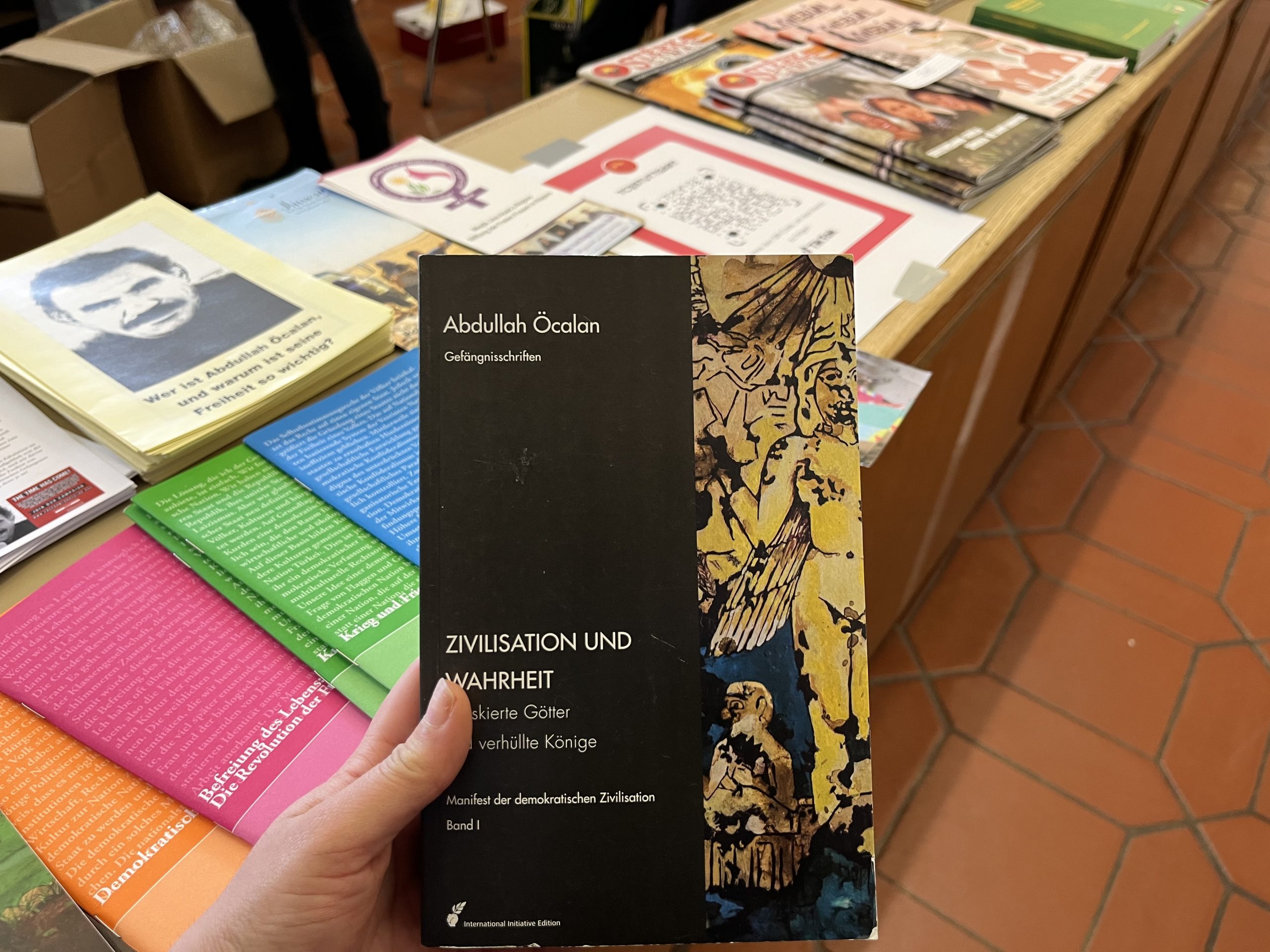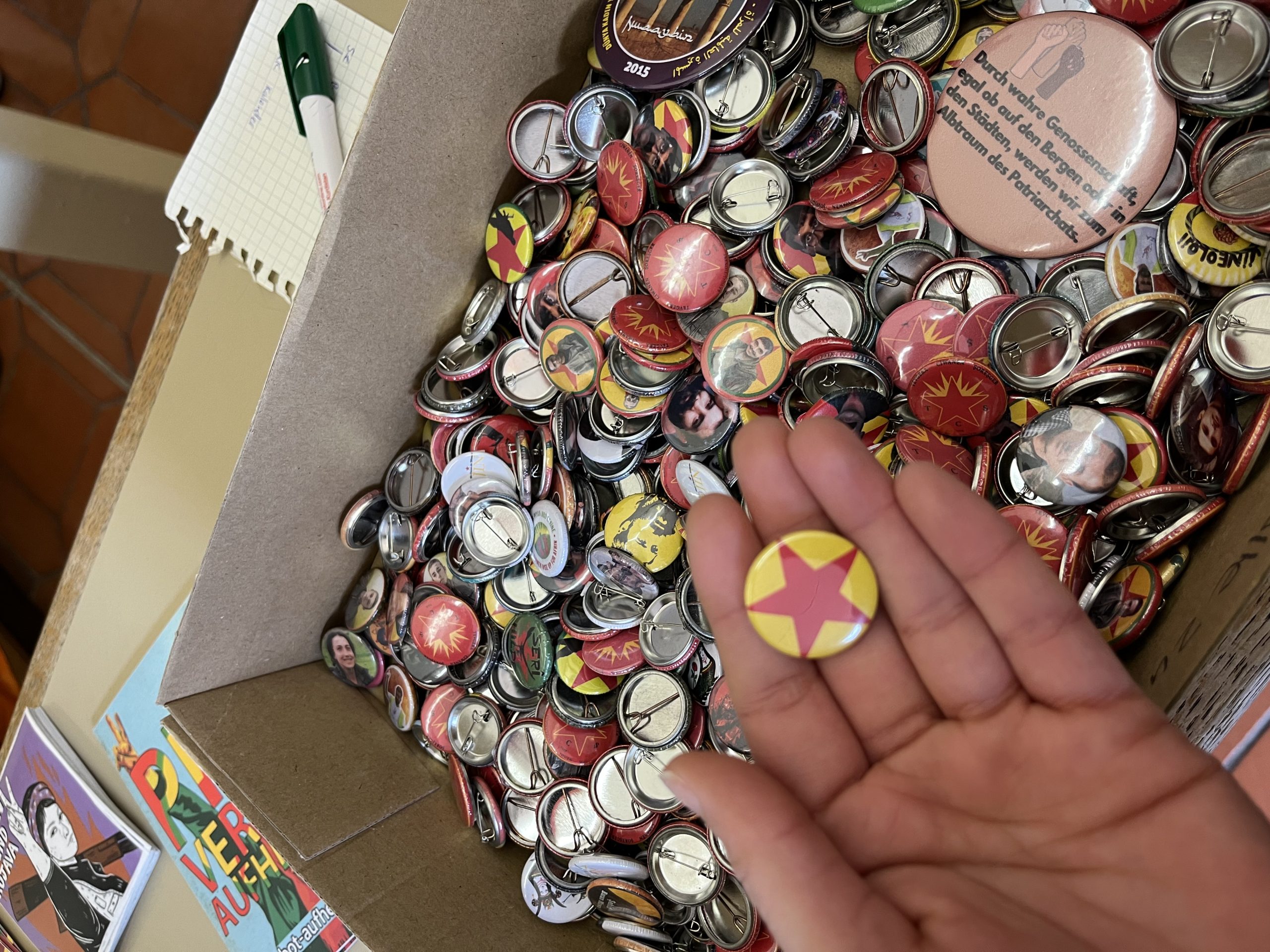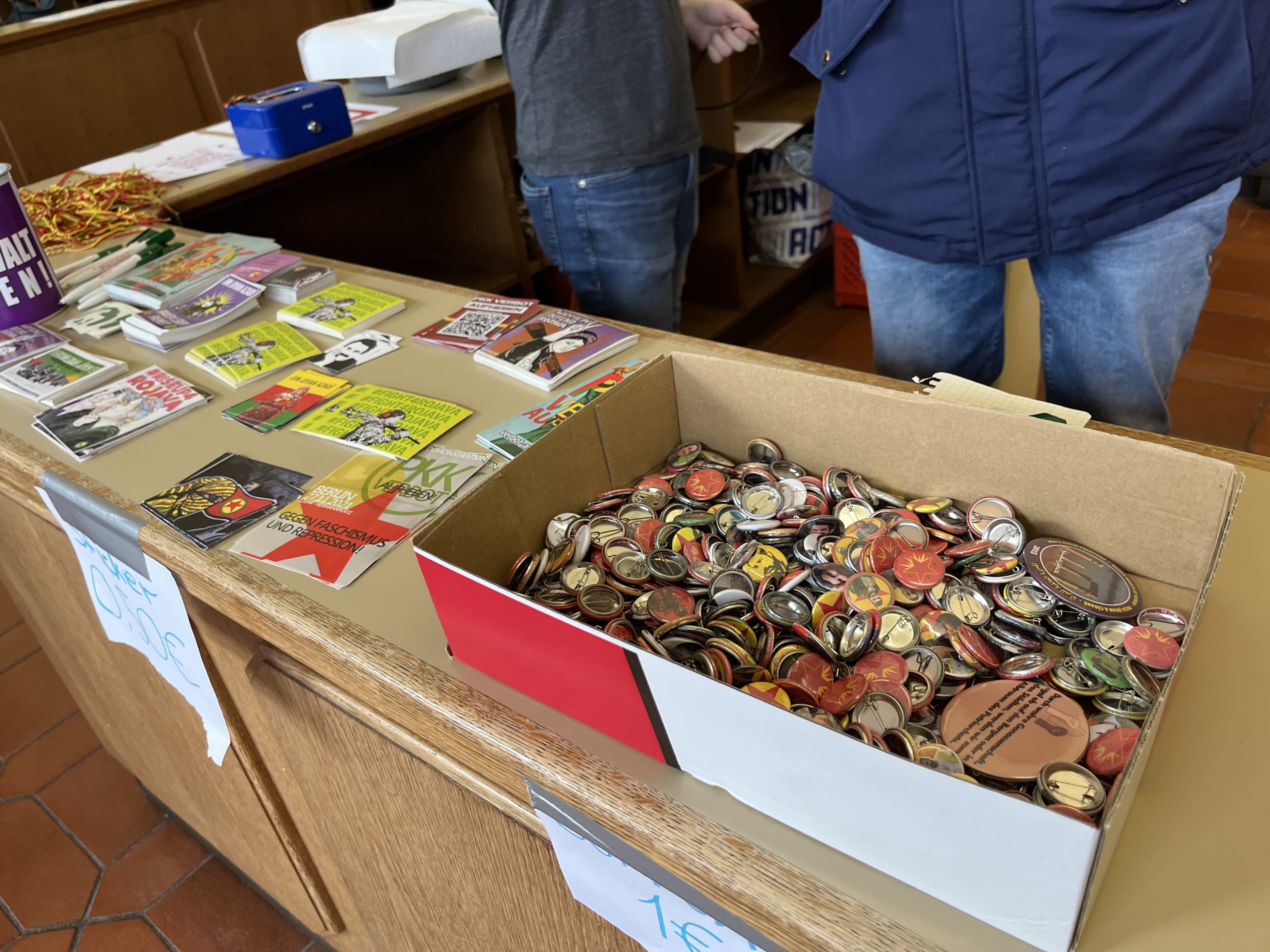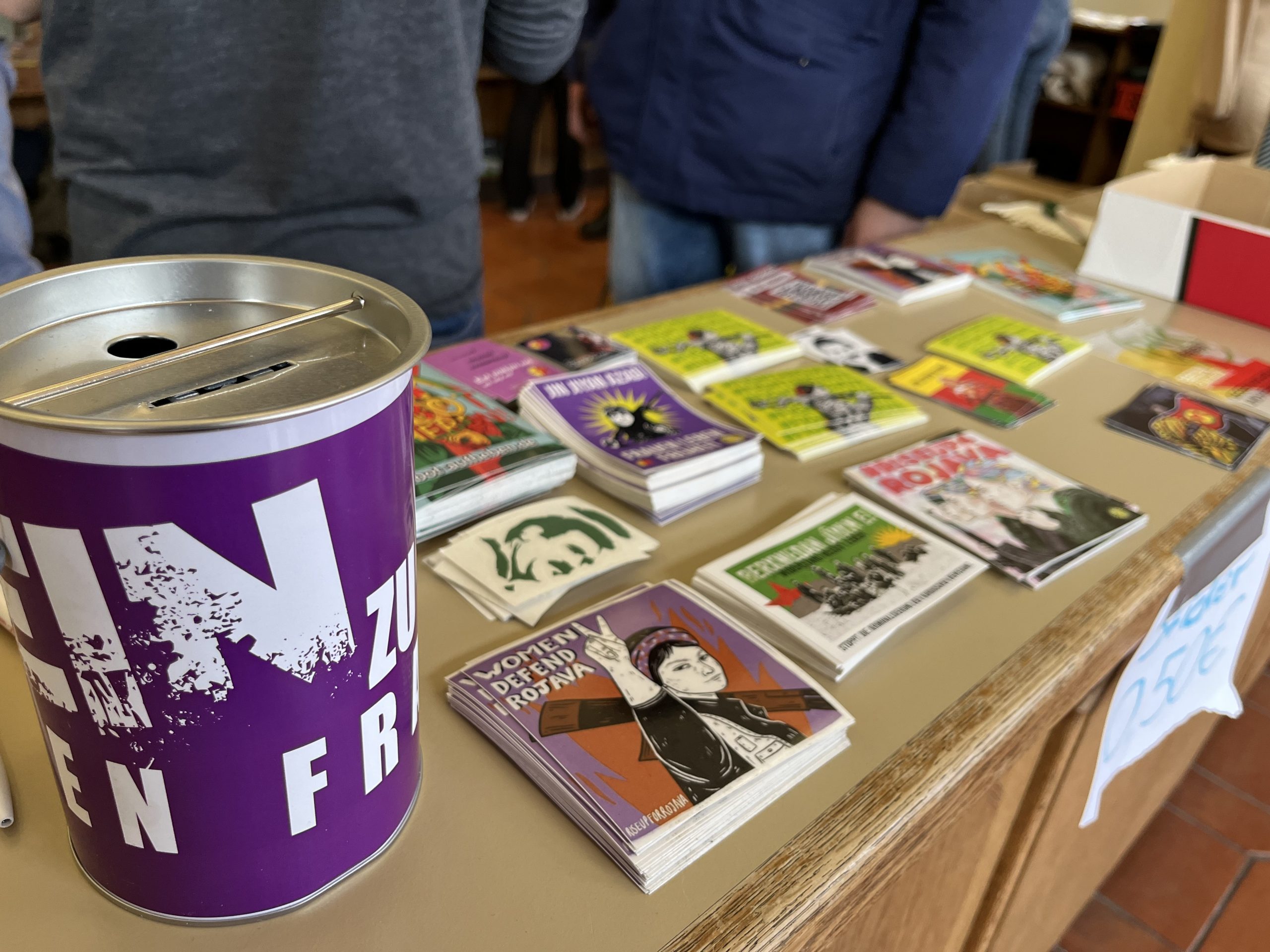 Konser salonu içerisinde TCŞ ve TekoJIN aktivisleri öncülüğünde Önder Öcalan‘ın kitaplarının olduğu, üzerinde „Werin Cenga Azadiyê“ yazılı tişörtler ve çeşitli eşyaların bulunduğu bir çok sayıda stantlar da açıldı.