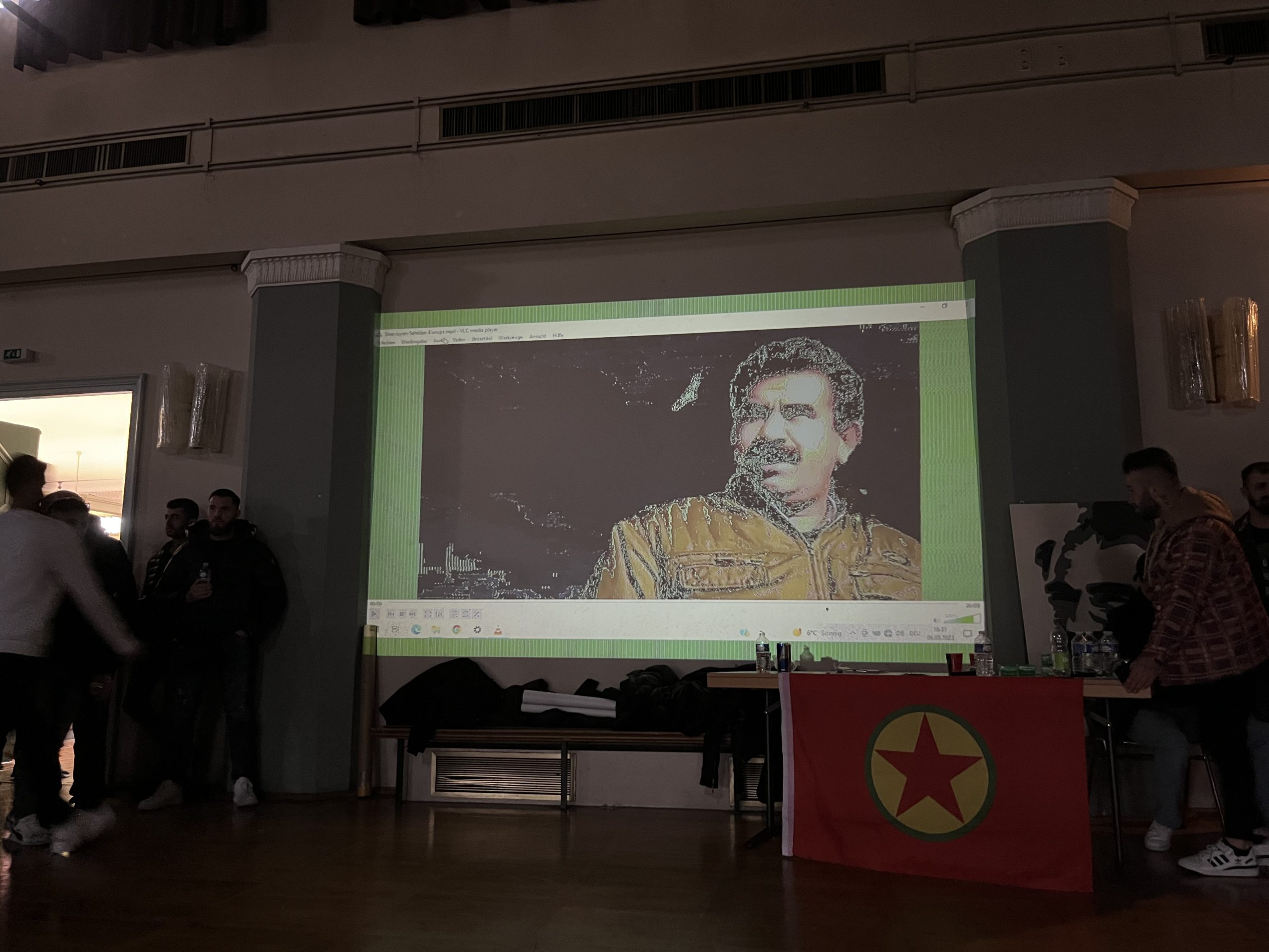 Salon Önder Öcalan‘ın bayrakları, Kürdistan Devrim Şehitlerinin ve PKK‘nin bayrakları ile de donatıldı.