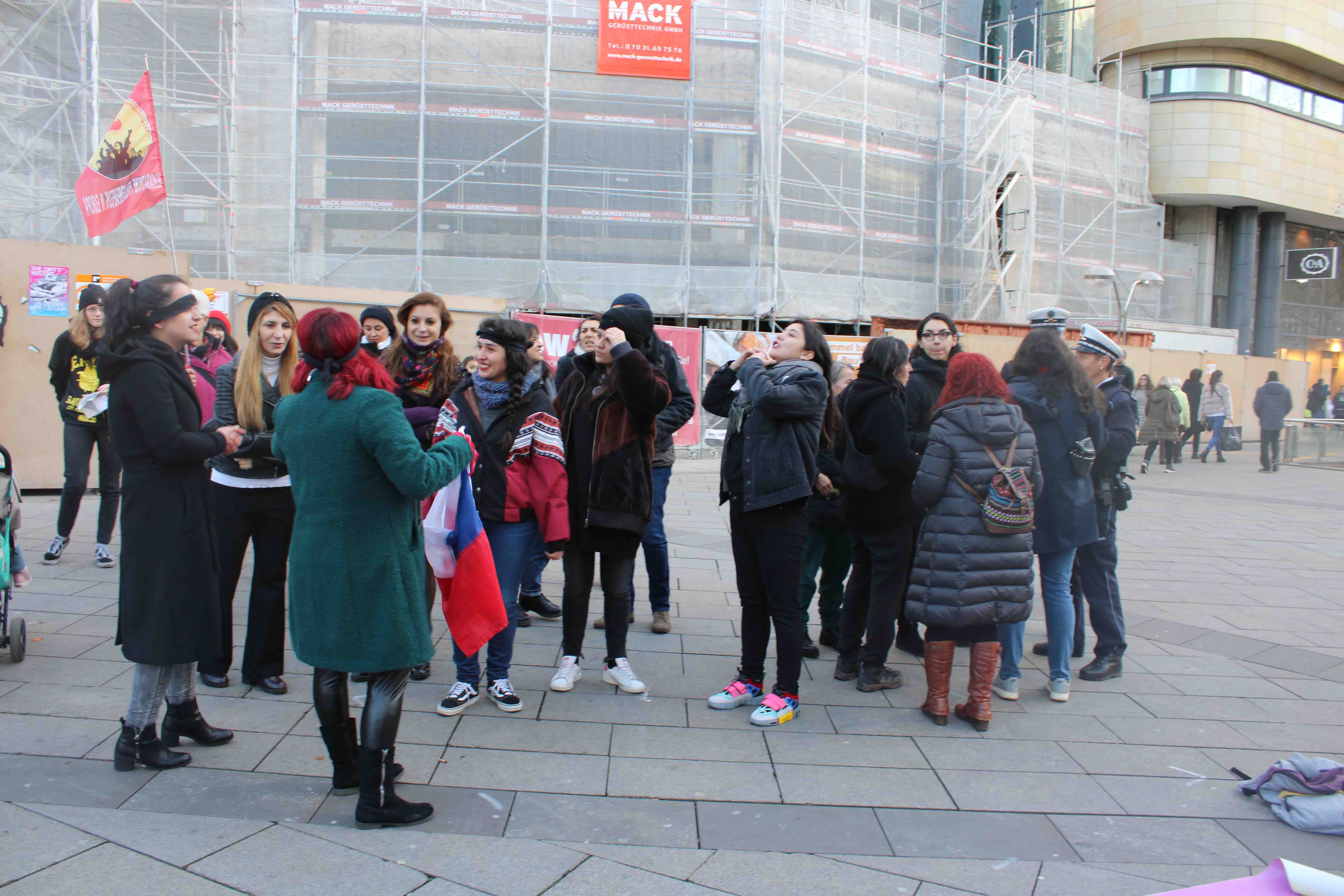 STUTTGART – Stuttgart’ta kadınlar, Şilili feminist kolektif Las Tesis aktivistlerinin erkek şiddetine yönelik başlattığı ve giderek tüm dünyaya yayılan dansı Almanya’da da gerçekleştirmek için bir araya geldi.