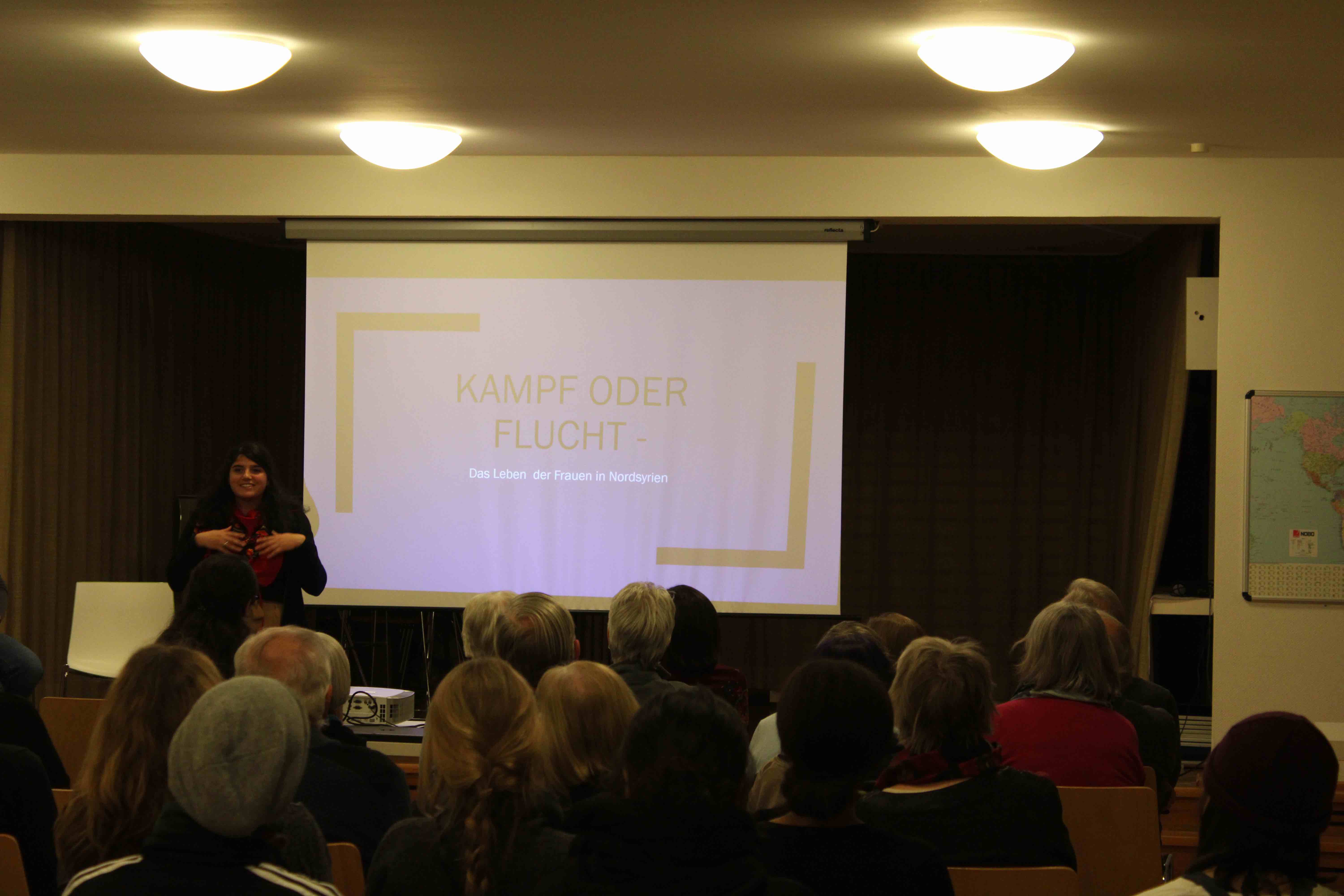 5 Aralık Perşembe günü Almanya’nın Stuttgart kentinde Frauen Forum Schorndorf (Schorndorf Kadınlar Forumu), Zentrum für Internationale Begegnungen (Uluslararası Buluşma Merkezi) ve Jinên Xwendekar ên Kurdistan (Kürdistanlı Kadın Öğrenciler) tarafından “Mücadele veya Kaçış – Kuzey Suriye/Rojava’daki Kadınların Durumu” adıyla bir etkinlik düzenlendi.