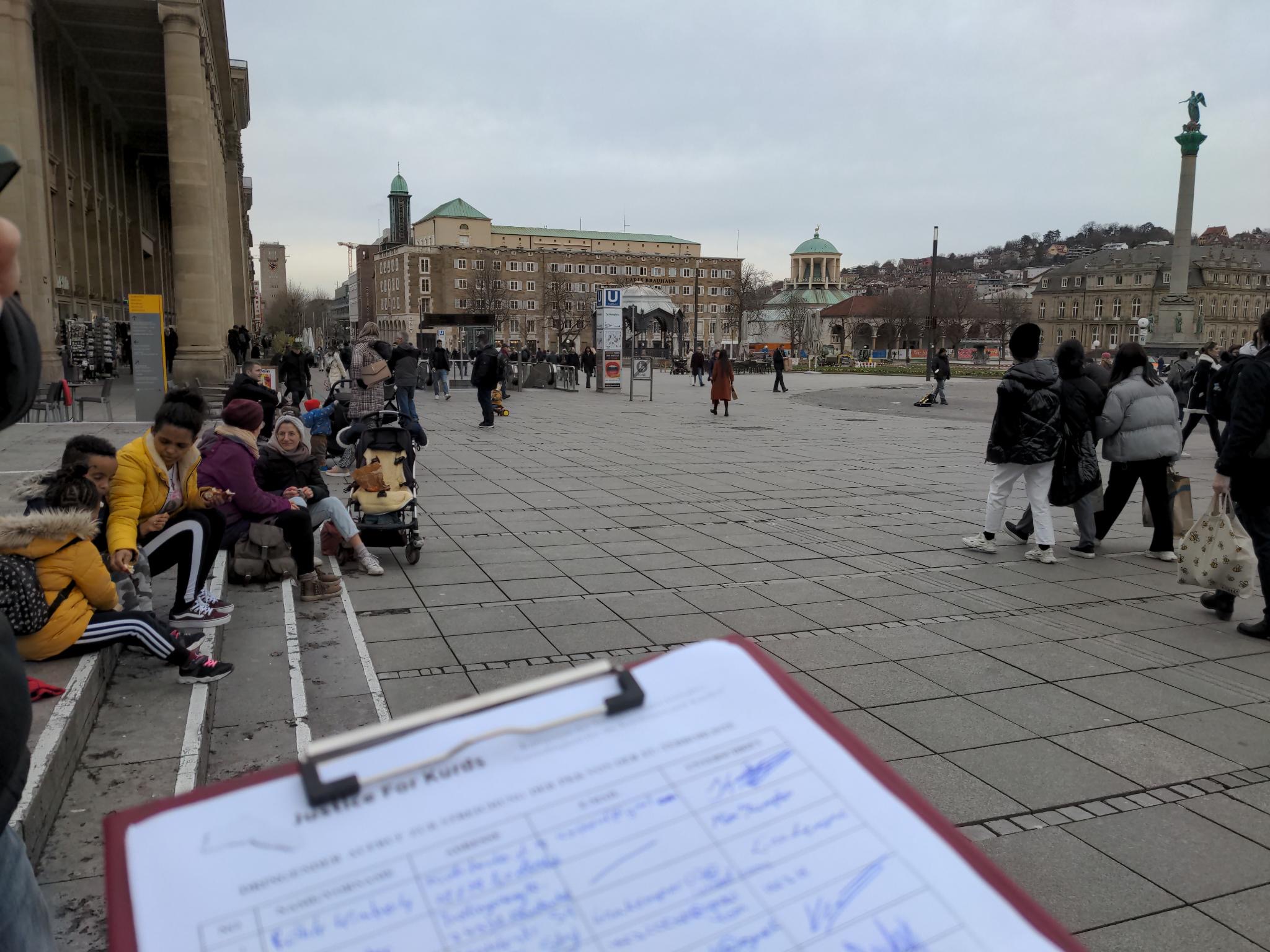 STUTTGART – TCŞ aktivistleri PKK’nin terör listesinden çıkarılmasına yönelik başlatılan imza kampanyası için Stuttgart’ta Kobanêplatz’da ve Königstrasse’de imzalar topladı.