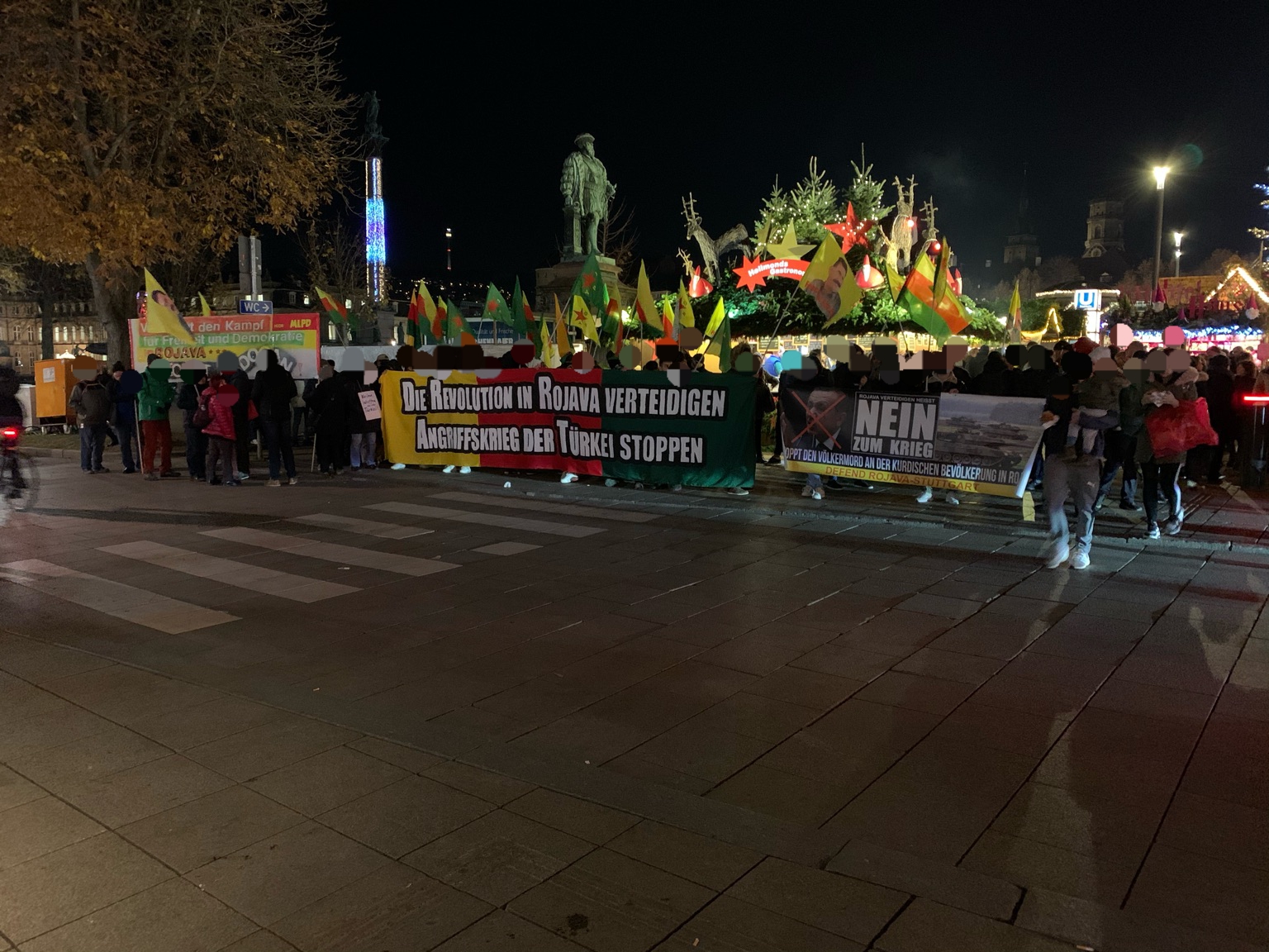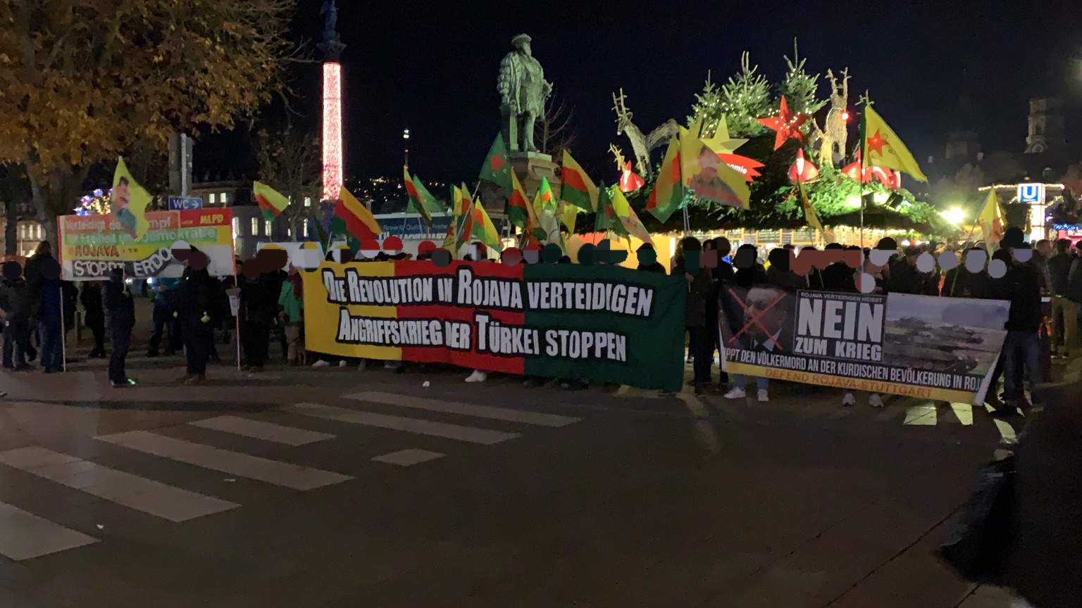 Nehêle hamlesi kapsamında “Katliama izin verme” şiarıyla yapılan eylem, saat 18’de Stuttgart Kobanê (Schlossplatz) meydanında başladı. Meydanda toplanan 50’nin üzerinde genç, üzerinde Almanca “Rojava’daki devrimi sahiplen, Türkiye’nin saldırısını durdur” ve “Savaşa hayır! Kürt halkına katliama İzin verme” yazan pankartlar ile yürüyüşe başladı. YPG-YPJ flamaları ve Halklar Önderi Abdullah Öcalan posteriyle yürüyen gençler Almanca ve Kürtçe attıkları sloganlar ile Til Rifat’taki Türk katliamını lanetledi.