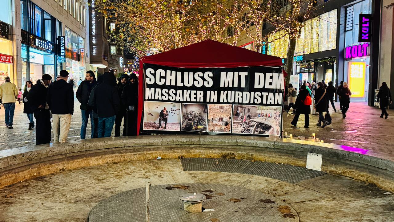 STUTTGART – Stuttgart’ta Rojava’daki savaş ve insanlık suçlarına dikkat çekmek, kamuoyunu bilgilendirmek ve dayanışmayı örgütlemek amacıyla DKTM öncülüğünde kurulan 3 günlük bilgilendirme çadır nöbetini bugün gençler tuttu.