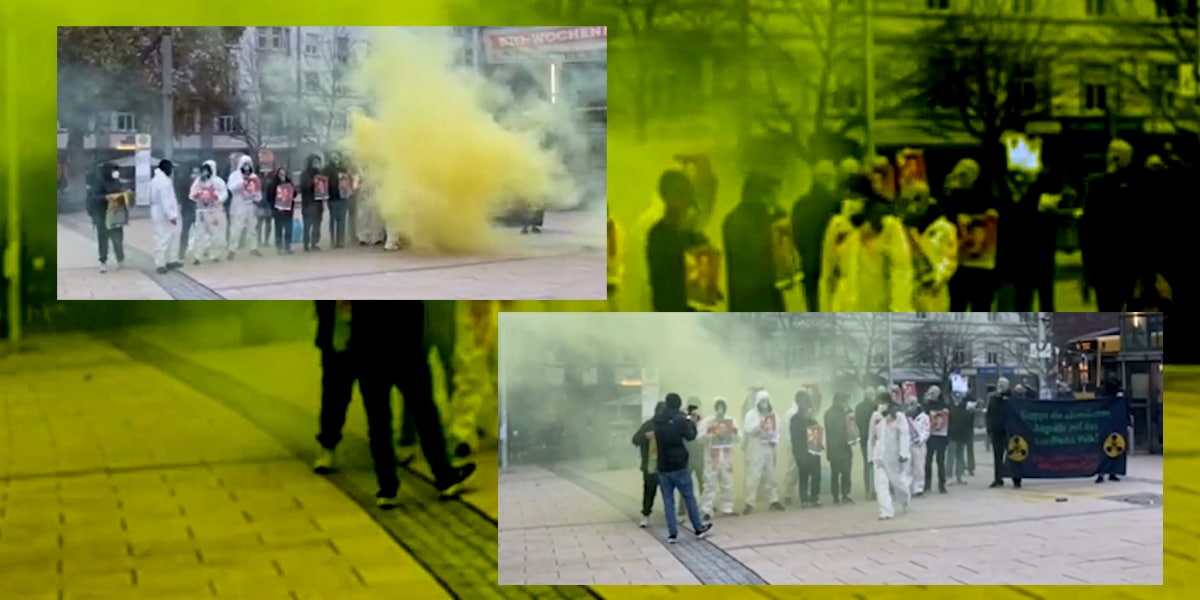 Aralık ayının başında çoğu insanın Noel pazarında toplandığı gibi, gençler de beyaz koruyucu giysiler, gaz maskeleri, pankartlar ve şehit gerillaların resimleriyle işgalci Türk devletinin Kürdistan’a yönelik saldırılarına dikkat çekmek için orada toplandı.