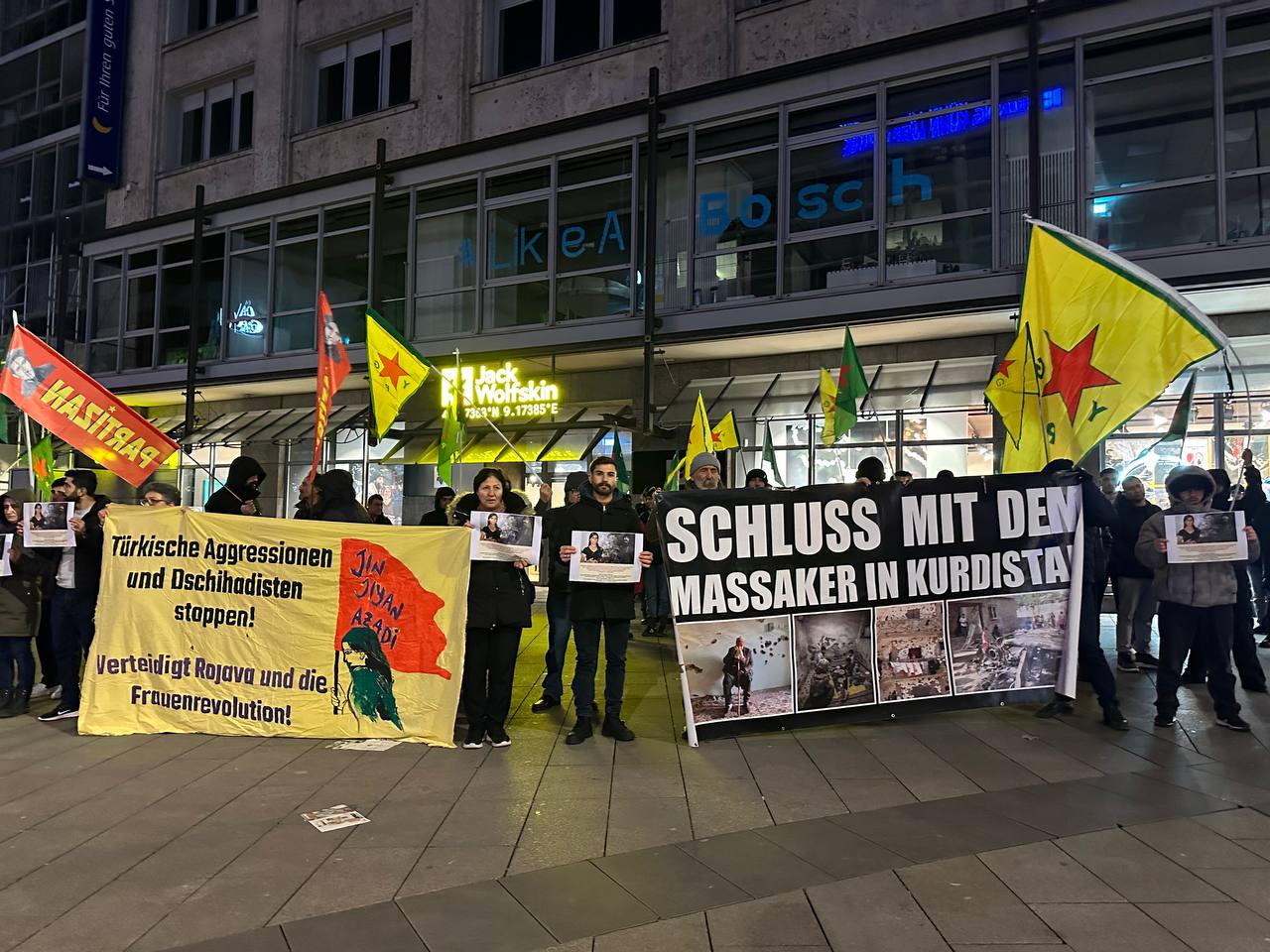 STUTTGART – Tevgera Ciwanên Şoreşger (TCŞ) ve Jinên Ciwan ên Tekoşer(TekoJIN) üyesi gençler öncülüğünde Almanya’nın Stuttgart kentinde, özgür basın muhabiri Cihan Bîlgîn ve gazeteci Nazım Daştan’ın faşist Türk devletinin saldırısı sonucu şehit düşmeleri mitingle protesto edildi. Miting ardından Stuttgart Merkez Tren Garında sivil itaatsizlik eylemi gerçekleştiren gençlere, faşistlerin provokasyonu sonucu polis saldırdı.