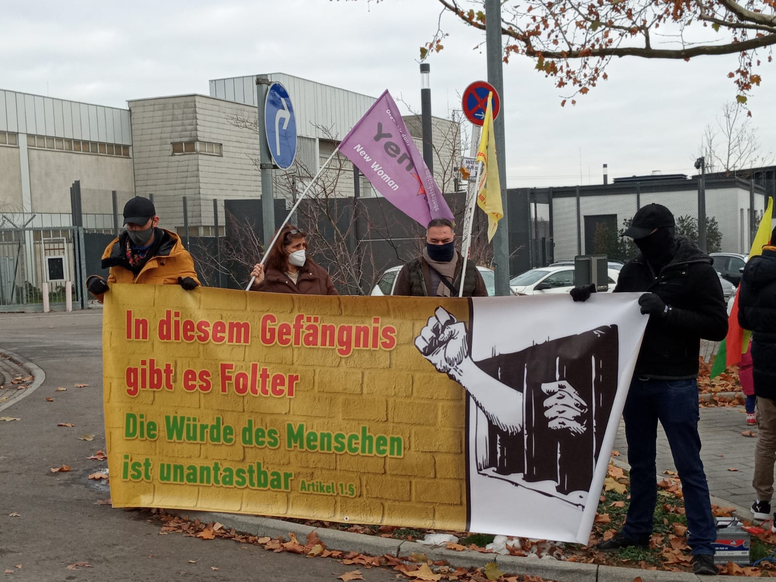 TCŞ aktivisti gençler ve yurtsever halk, Almanya’nın Stuttgart kentinde bulunan ve sık sık Kürt tutsaklara yönelik insanlık dışı yaklaşımlarıyla gündeme gelen Stammheim Cezevi önünde bir eylem düzenledi.