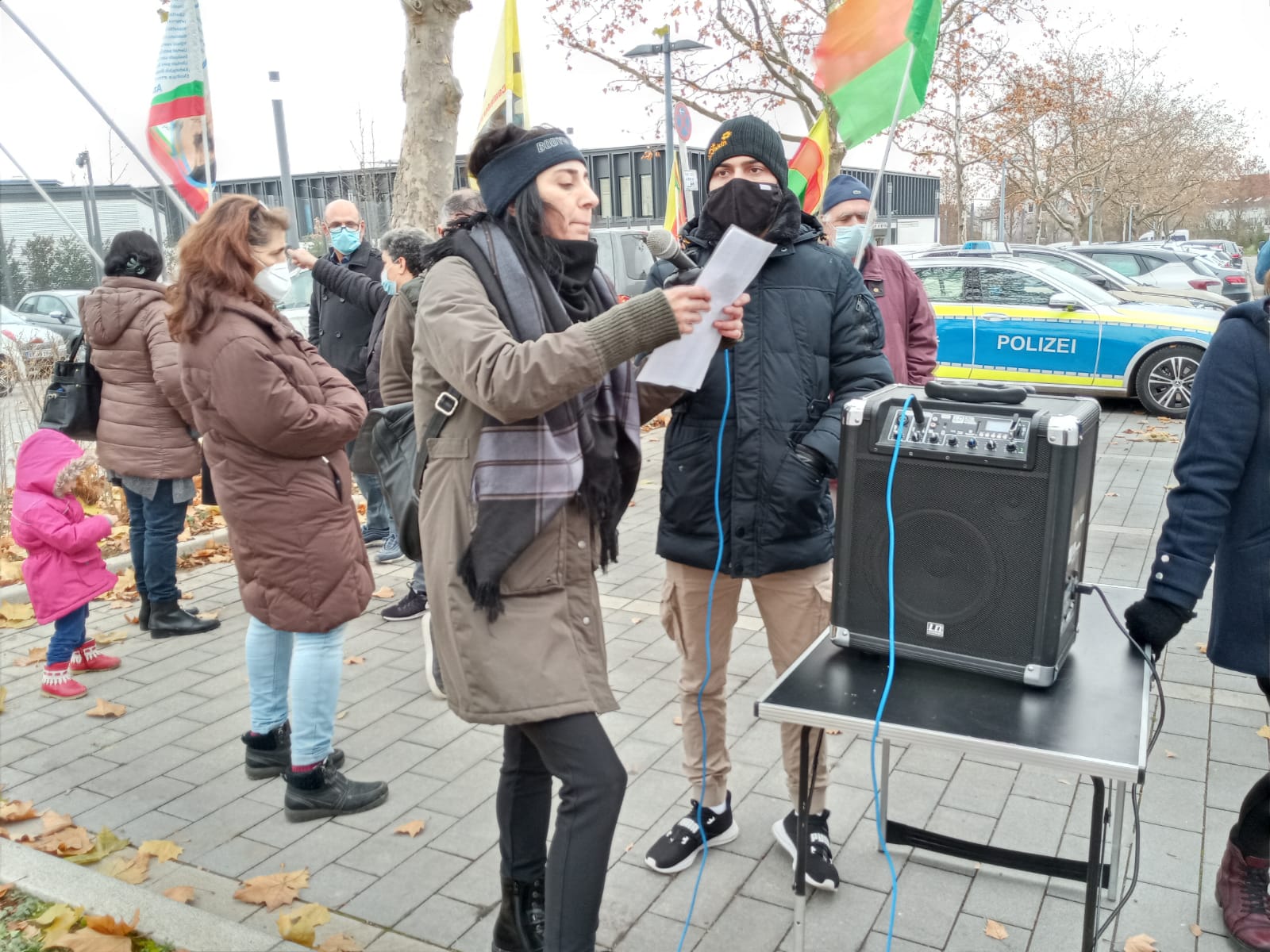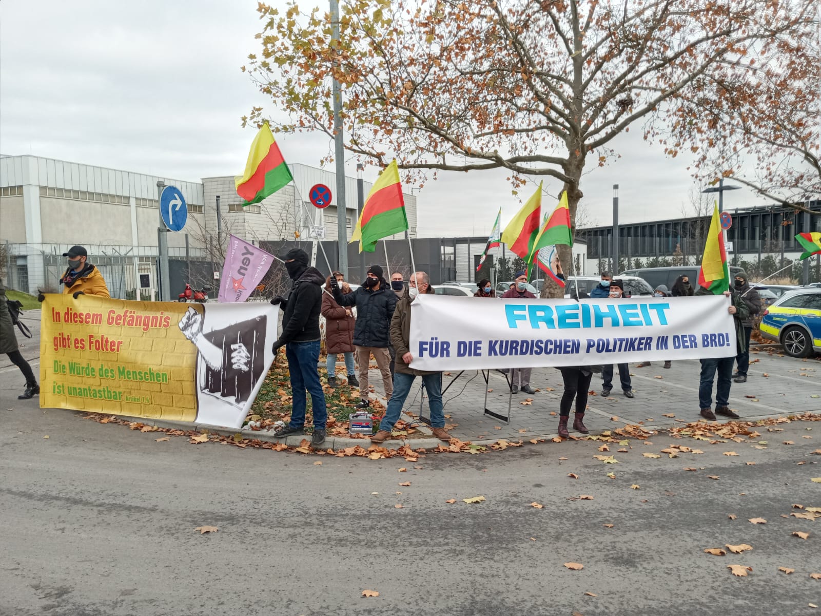 Öğlen saatlerinde düzenlenen eylemde, Kürt ve devrimci tutsakların tutulduğu ve politik tutsaklara yönelik insanlık dışı yaklaşımları nedeniyle tepki çeken Stammheim Cezaevi uygulamaları protesto edildi.