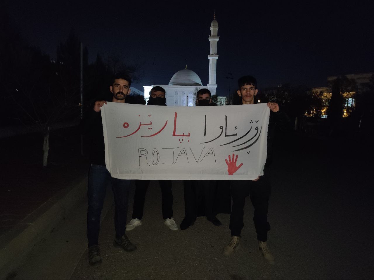 SILEMANÎ- Türk devleti ve çetelerinin Kuzey ve Doğu Suriye’ye yönelik işgal ve saldırılarına karşı tepkilerin devamında Silêmanî gençleri protesto eylemi düzenledi.
