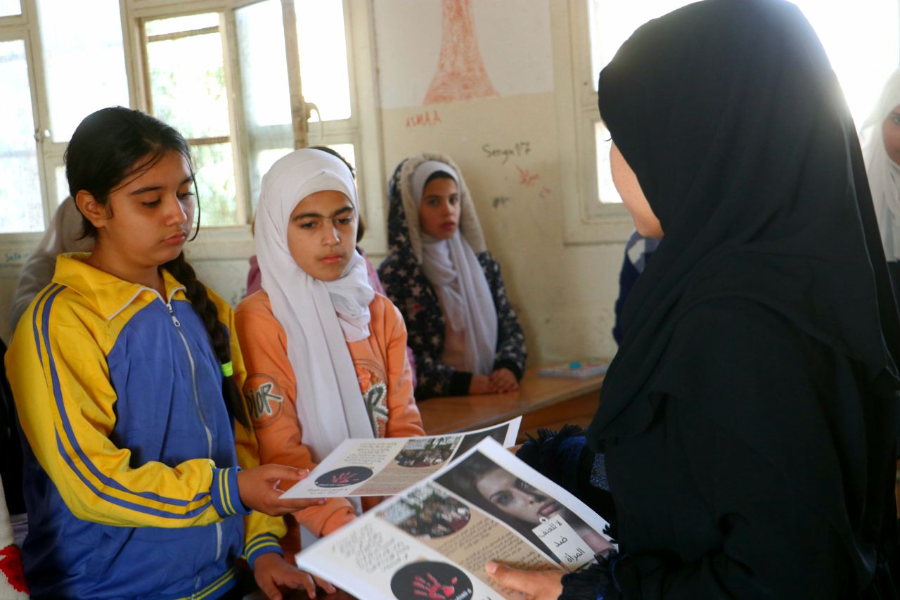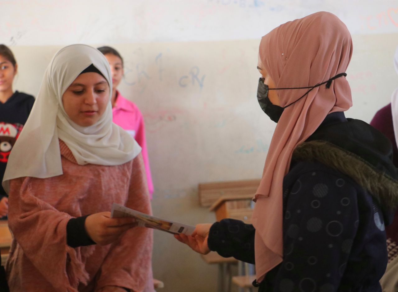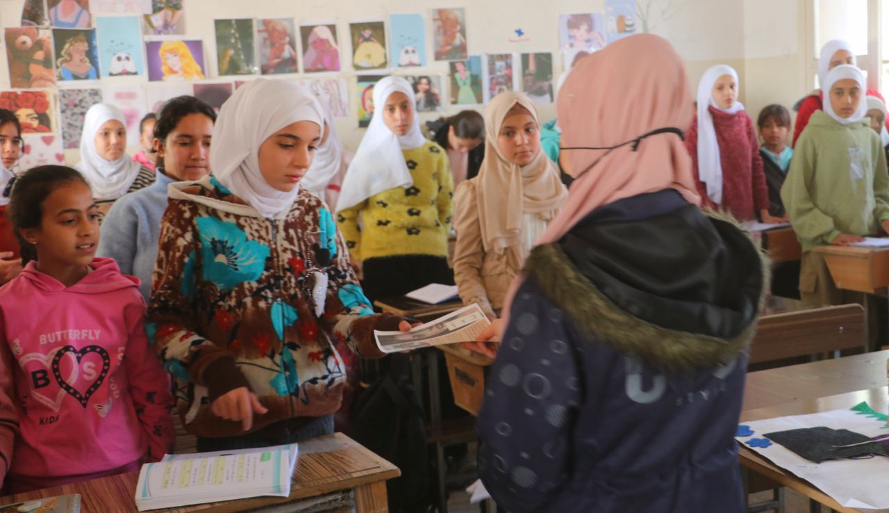 Genç kadınlar Tabqa’da 25 Kasım’la ilgili broşürler dağıttı. Gençlik ve Spor Meclisi Genç Kadın Bürosu, Tabka ilçesindeki okul ve işyerlerinde kadına yönelik şiddete karşı broşürler dağıtmak için kampanya düzenledi. Bu broşürlerin amacı öğrencileri bilinçlendirmek, kadına yönelik şiddeti ve toplumda kadınları tahakküm altına alan erkek zihniyetini tanımaktır.