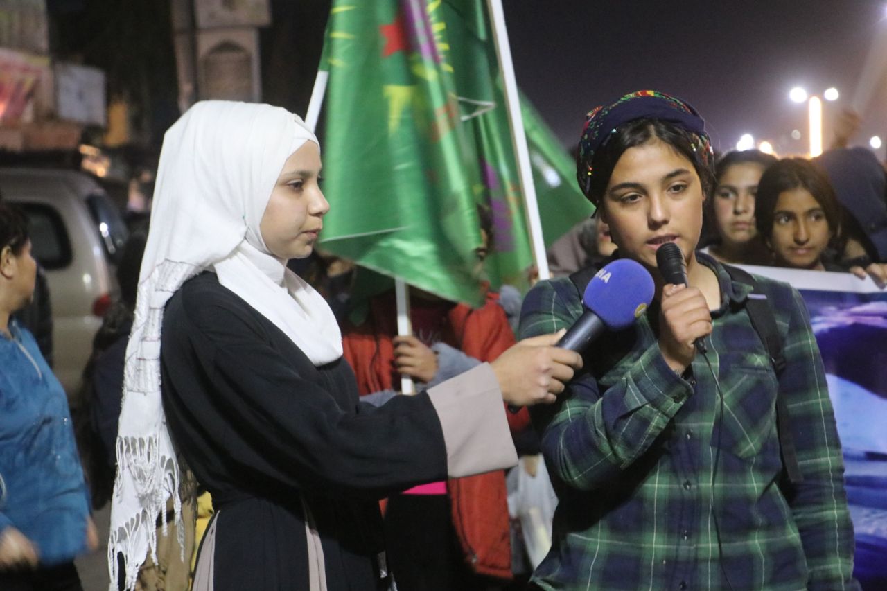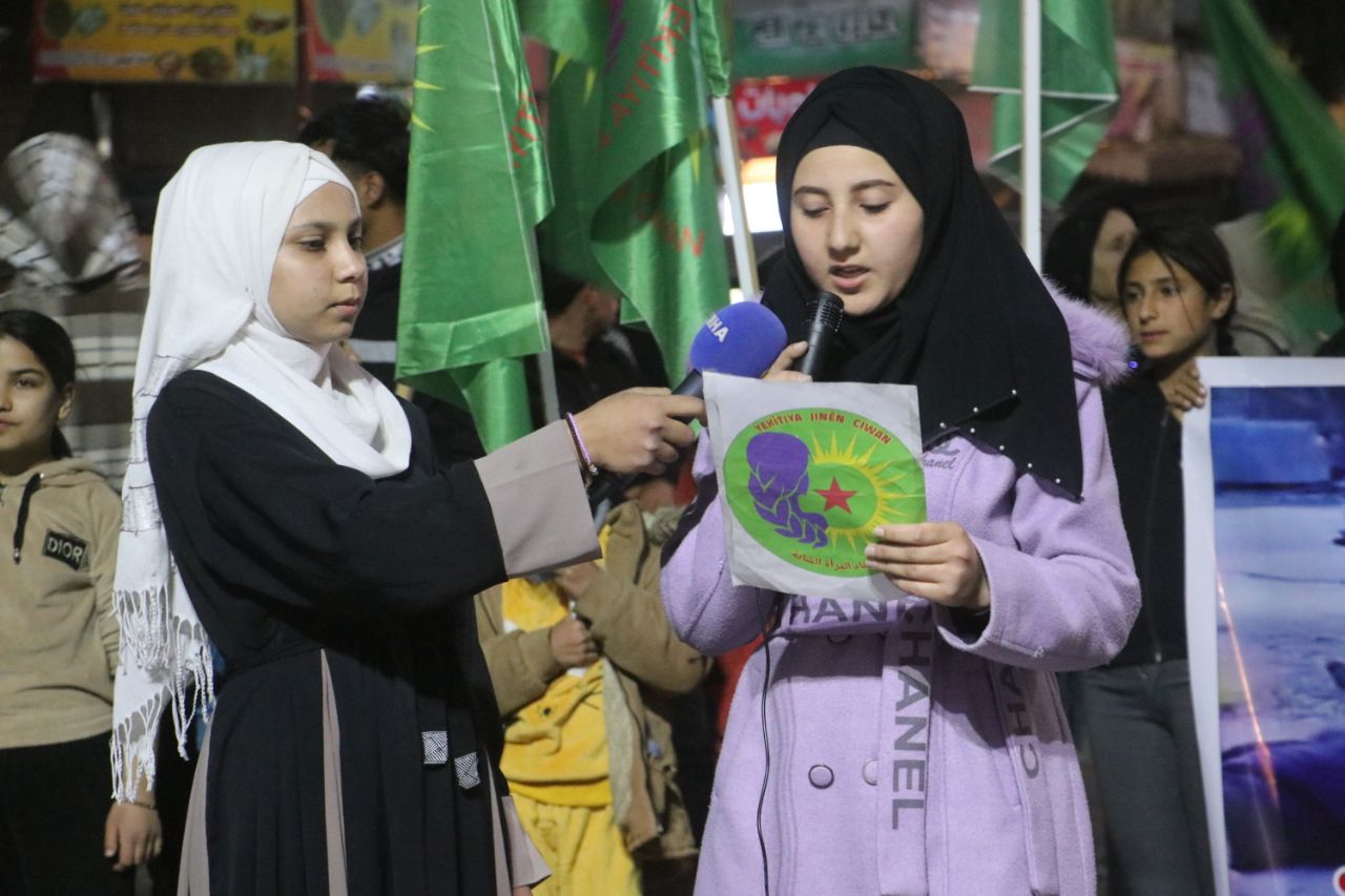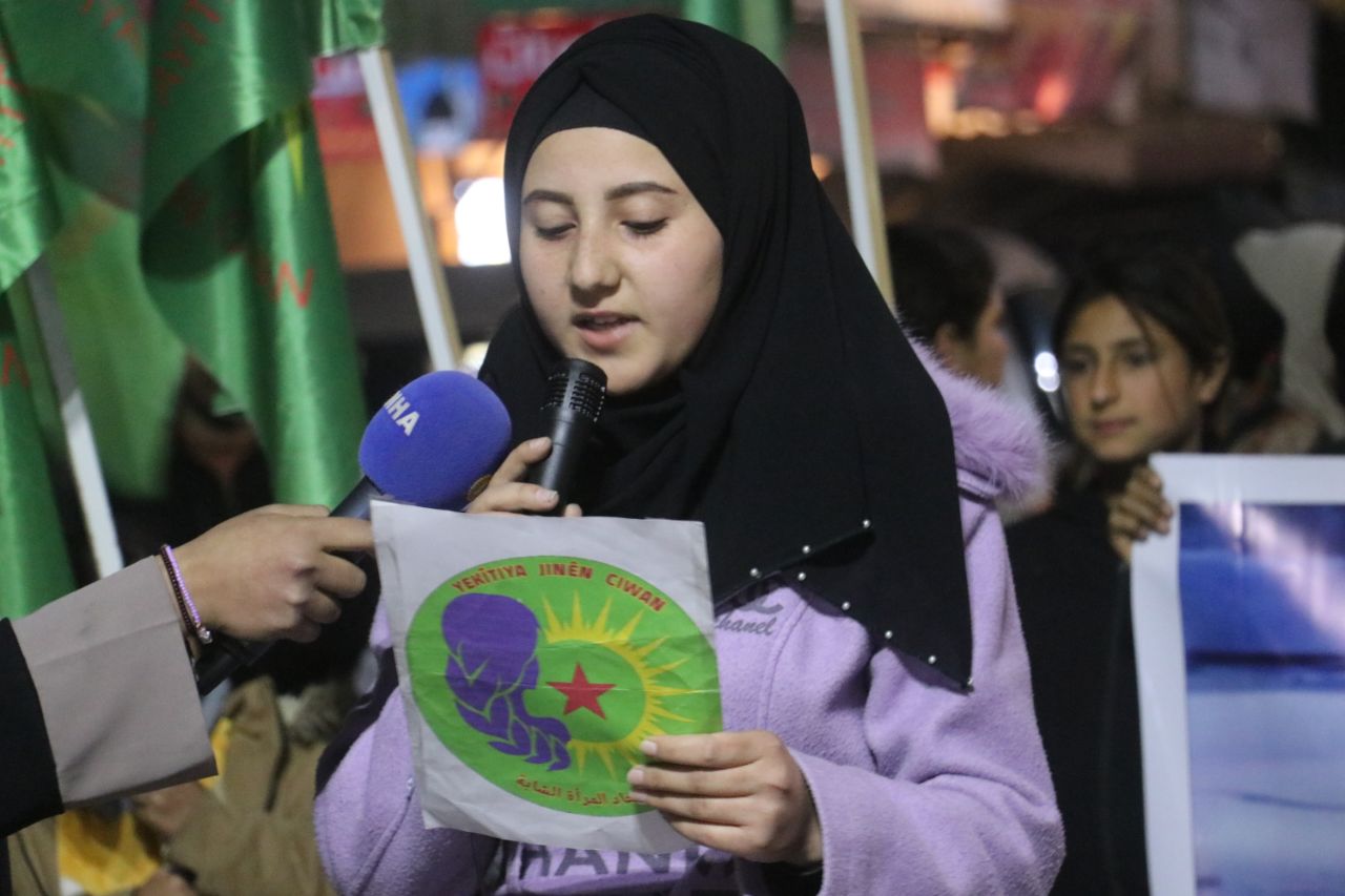 Daha sonra Afrin Genç Kadınlar sözcüsü Nujiyan Efrîn de konuştu ve Cebel, Kardaha ve Lazkiye bölgelerindeki katliamlara ilişkin tutumunu göstererek, bu eylemlerin tüm ahlaki ve insani değerlere aykırı olduğunu ve yeni ve özgür bir Suriye’nin yaratılmasına karşı olduğunu belirtti.