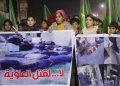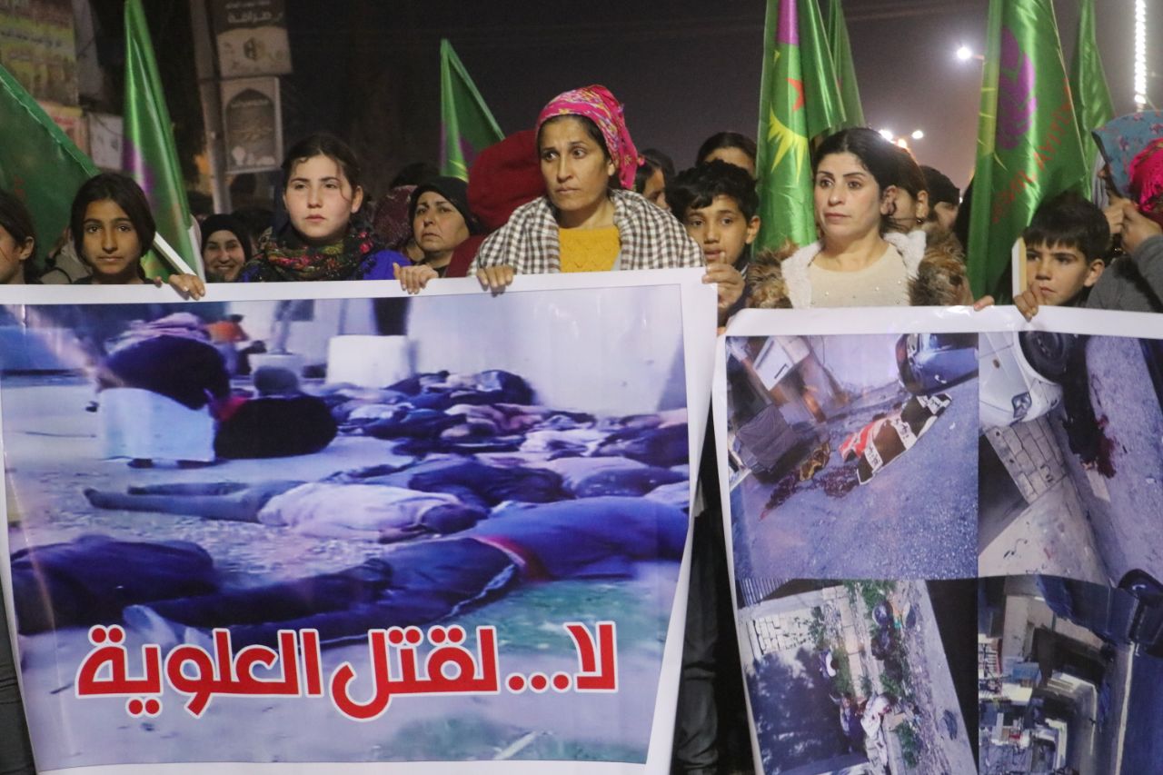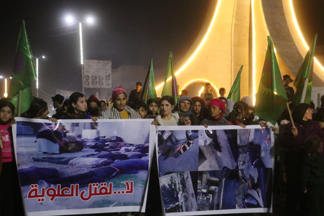 Saat Kulesi’nde toplanan onlarca genç kadın, ellerinde pankartlarla, son günlerde yüzlerce Alevi’nin katledilmesine tepki göstererek açıklama yaptı. Açıklamayı Tebqa Genç Kadınlar Sözcüsü Aya El Saxir okudu. Açıklamada, çetelerin özellikle kadın ve çocuklara yönelik vahşice işlediği suçlar kınandı.