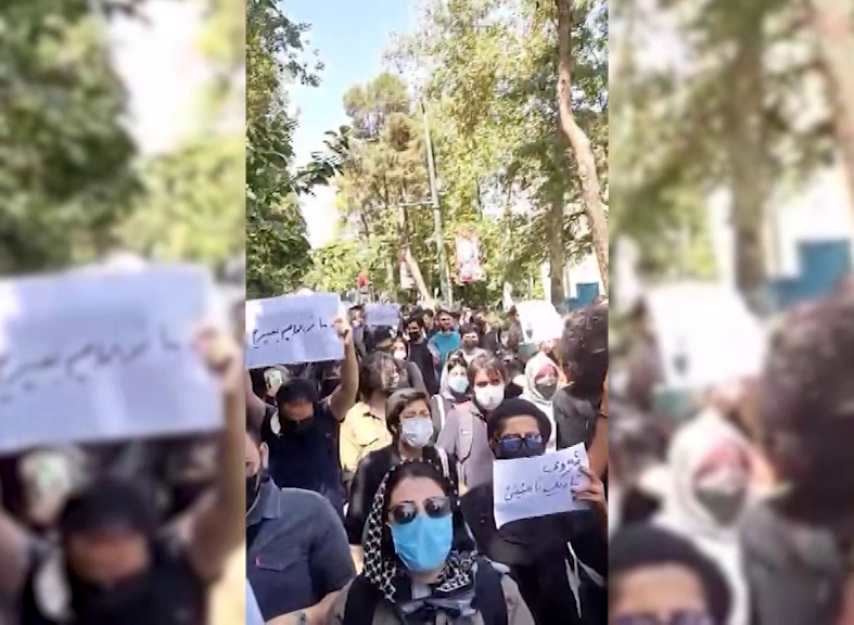 HABER MERKEZİ–Tahran Üniversitesi’nde öğrenciler kitlesel bir yürüyüş gerçekleştirerek İran rejiminin “ahlak polisi” tarafından katledilen 22 yaşındaki Rojhilat’lı genç kadın Masha Amini için sokaklara çıktı.