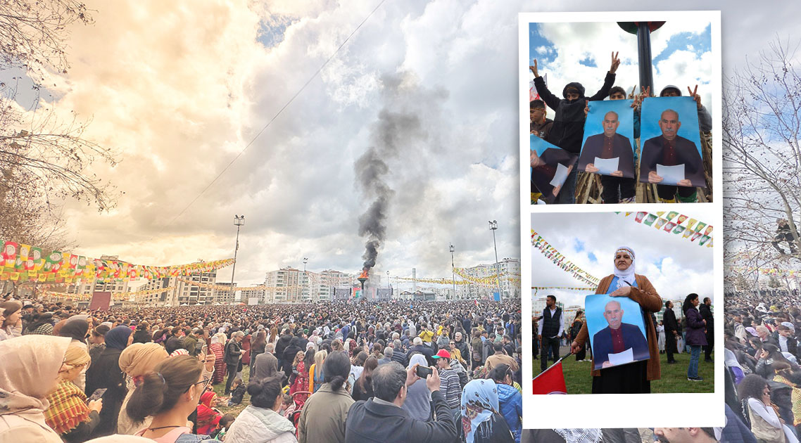 AMED – Amed’de Newroz ateşi büyük bir coşkuyla yakıldı. Katılımcılar Kürt ulusal kıyafetleriyle halay çekiyor. Yüz binlerce kişi barış ve demokrasi için buluştu. Önder APO’nun Newroz değerlendirmeleri, kendi sesinden yüzbinlere dinletildi.