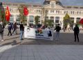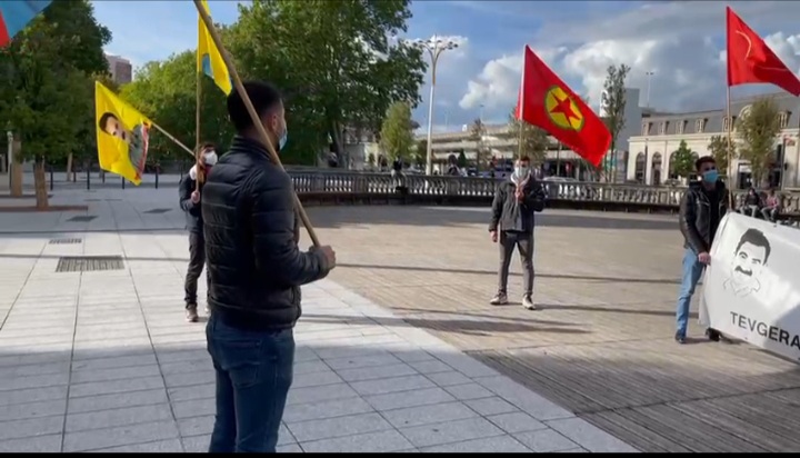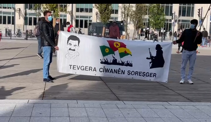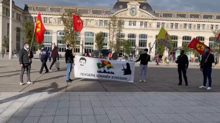 Saat 19’da merkez tren istasyonu önünde başlayan eylemde gençler Önder Öcalan’ın posterlerini ve TCŞ ile PKK bayraklarını açtılar. Gençler, Fransızca ve Kürtçe “A Bas Le Régime Fasciste En Turquie (Kahrolsun Faşist Türk Rejimi)”, “Bijî Serok APO”, “Bijî Berxwedana Metîna” ve “Terörist Erdoğan” sloganlarını atarken Fransızca bir de açıklama yaptı.