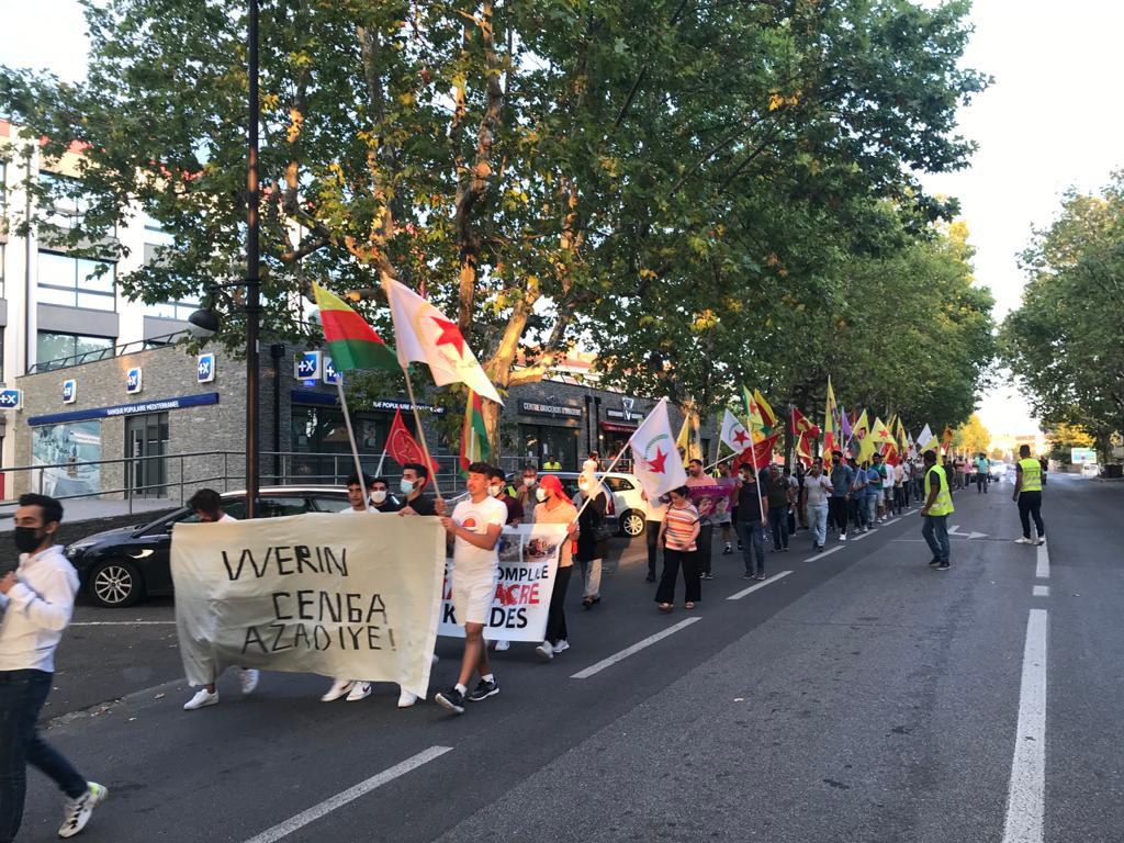 Eylemde sık sık “Bijî Serok APO”, “Bimre Îxanet” ve “Her der Berxwedan Her der Serhildan” sloganları atıldı.
