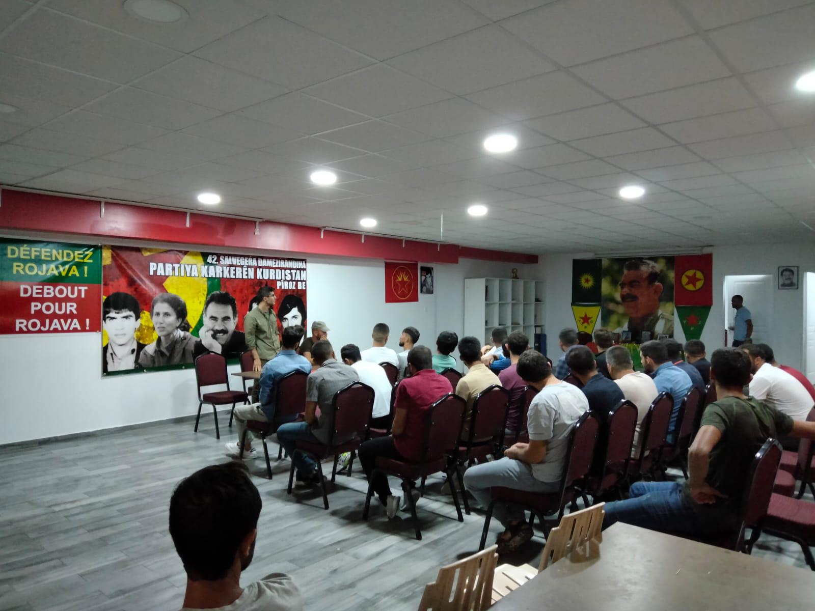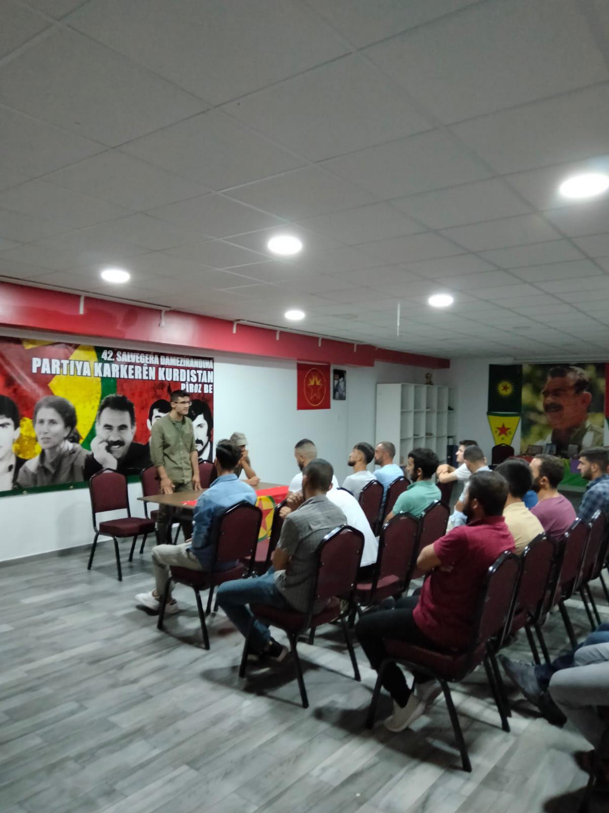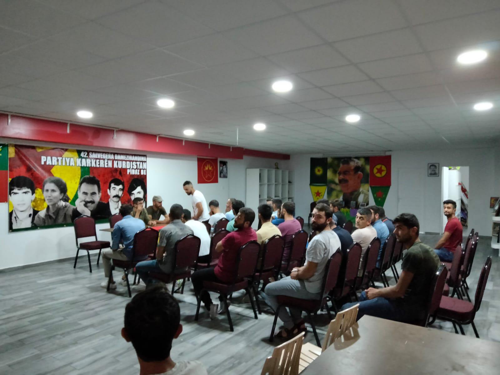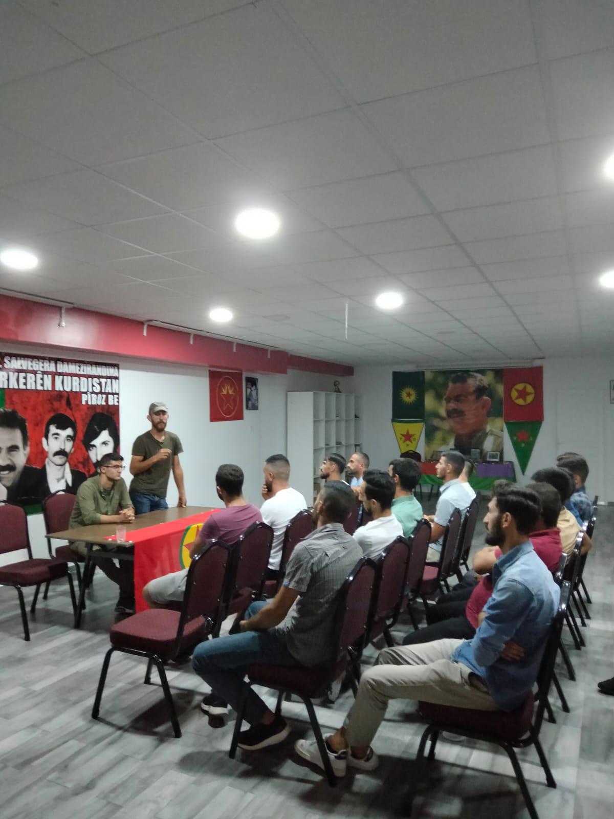 Akşam saatlerinde bir araya gelen gençler Kürdistan Devrim Şehitleri anısına bir dakikalık saygı duruşunun ardından toplantılarına başladılar. Toplantıda siyasal sürece ilişkin değerlendirmeler yapıldı ve Şehitler üzerine bir değerlendirme okundu. Ardından gençler, gençliğin sürece cevap olma noktasında üzerine düşenler üzerine tartışmalar gerçekleştirdi.