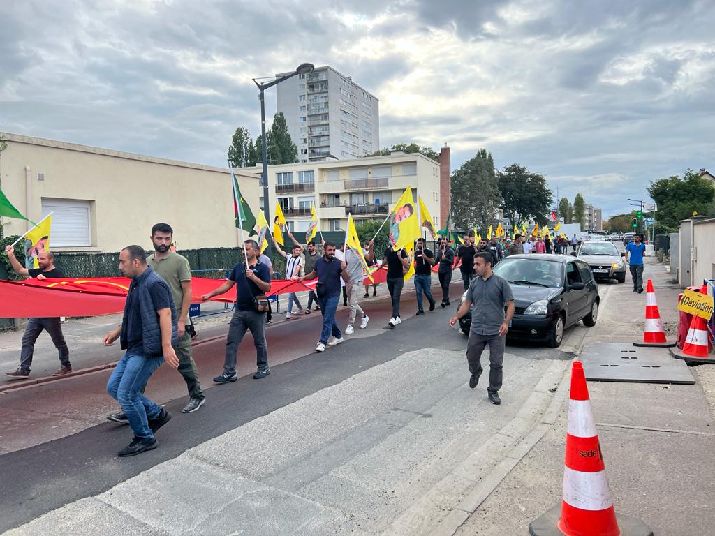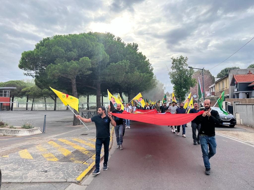 Önder APO posterleri, YPG ve YPJ flamalarının açıldığı yürüyüşte sık sık Önder APO’nun özgürlüğü için ve işgalci Türk devletinin Rojava Kürdistan’ına yönelik saldırılarına karşı sloganlar atıldı.