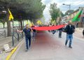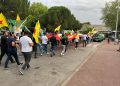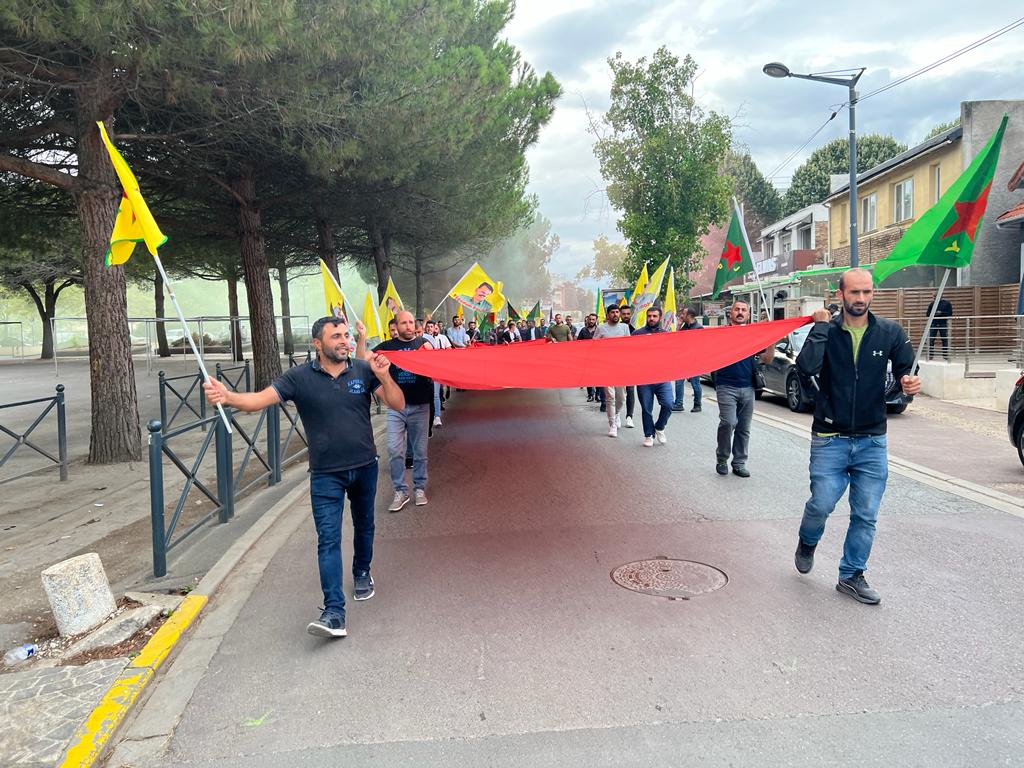 Rojava Kürdistan’ına yönelik işgal saldırıların da protesto edildiği yürüyüş yaklaşık iki saat sürdü.