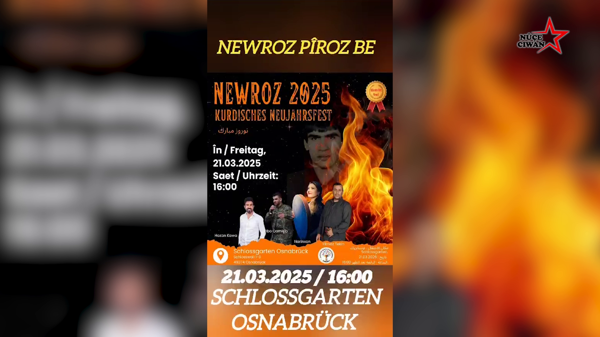 Münster ve Osnabrück gençliği yayınladıkları video ile bölge halkını Schlossgarten Osnabrück’te kutlanacak Newroz bayramına çağırdı.
