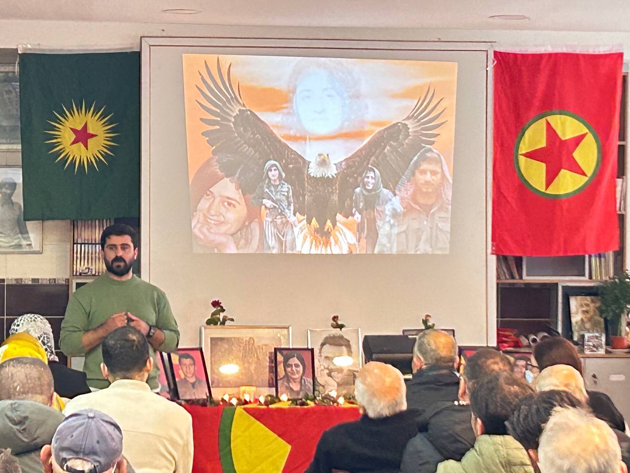 Anma, Ankara TUSAŞ’a yönelik fedai eylem gerçekleştiren Rojger Hêlîn, Asya Ali ve Şehit Beritan şahsında Kürdistan Özgürlük Şehitleri anısına saygı duruşu ile başladı. Açılış konuşması ardından Şehit aileleri adına konuşma yapan Çetin Amed “Yolumuzu aydınlatanlar ve özgür Kürdistan için canını feda edenler PKK saflarında mücadele edenlerdir” dedi.