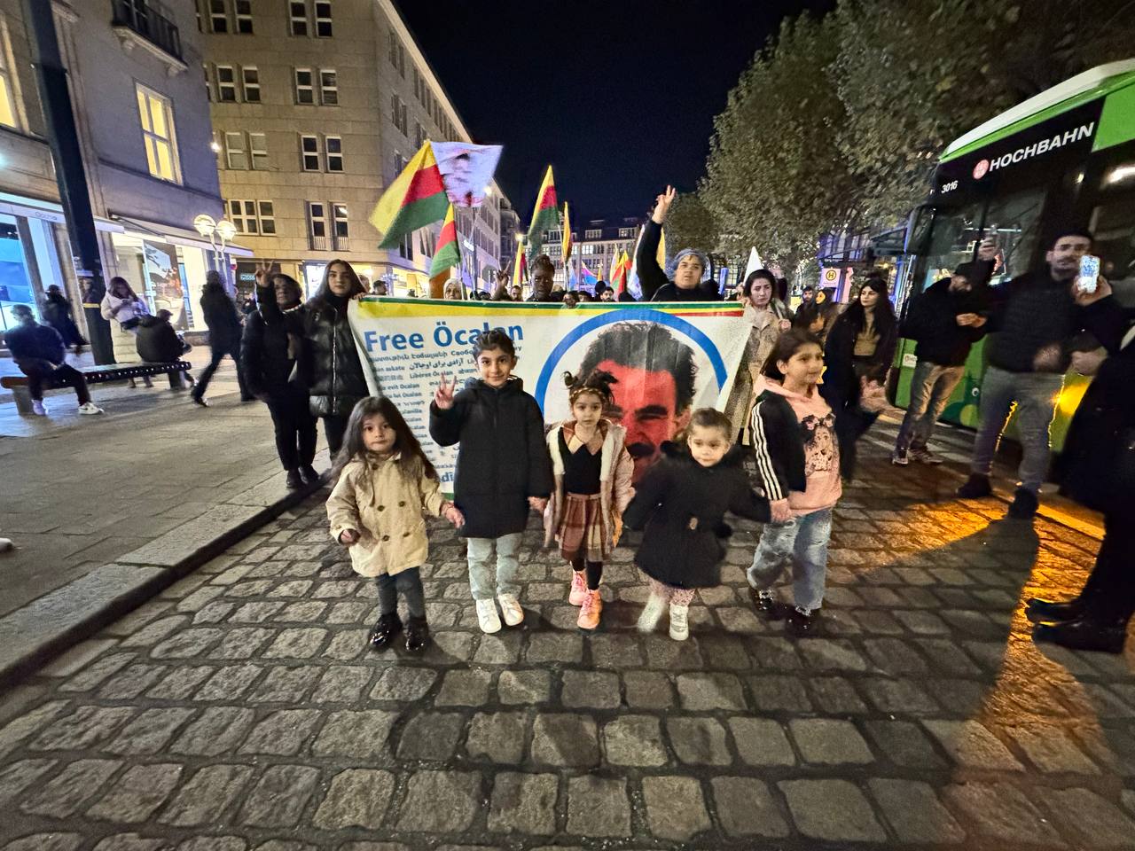 HAMBURG- Almanya’nın Hamburg kentinde Tevgera Ciwanên Şoreşger (TCŞ) üyesi gençler öncülüğünde “Önder APO’ya Özgürlük Kürt Sorununa Çözüm” hamlesi kapsamında Önder APO’ya uygulanan ağırlaştırılmış tecrit protesto edildi.