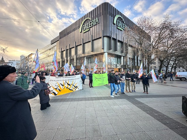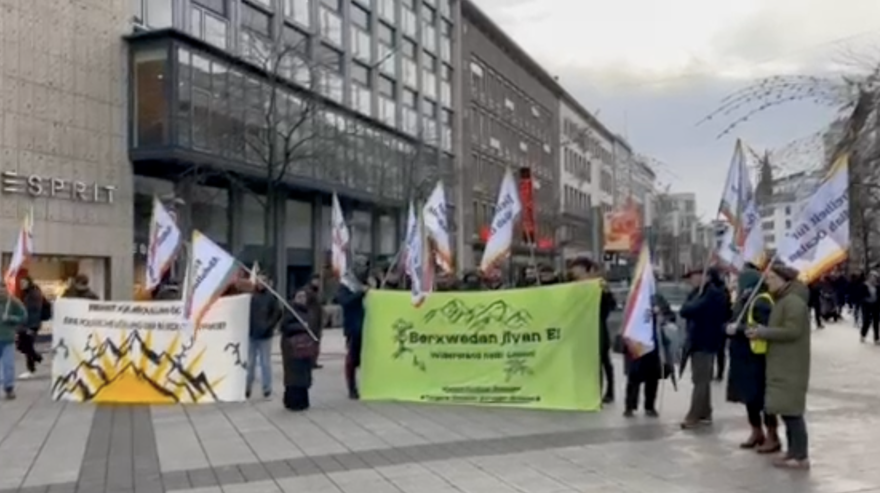HANNOVER – Gençler eylemlerine Şirnex Öz Yönetim sürecinde şehit düşen gerillalar şahsında tüm devrim şehitleri için “Çerxa Şoreşe” marşı eşliğinde saygı duruşu ile başladı.