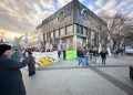 Ayrıca gençler eyleme birçok farklı dilde “Önder APO’ya Özgürlük” yazan bayraklar ve Şehit Mazlum Doğan’ın “Berxwedan Jiyane (Direnmek Yaşamaktır) sözü yazan pankart açıldı.
