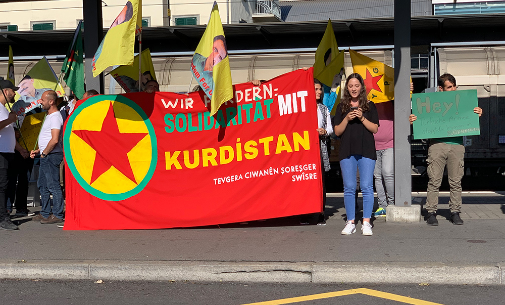 SOLOTHURN – Solothurn’da bulunan Olten merkez tren istasyonu önünde bir araya gelen çok sayıda Kürdistanlı sömürgeci Türk devletinin Başûr’a yönelik işgal saldırılarını protesto etti. TCŞ’nin çağrısıyla eyleme geçen yurtseverler Almanca “Talebimiz Kürdistan ile dayanışma” yazan bir pankart açtılar.