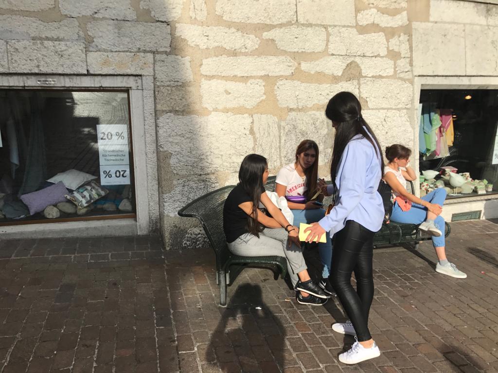 Hazırlanan el kartları şehrin en yoğun yerlerinde İsviçrelilere dağıtıldı, arabaların camlarına, otomatlara, posta kutularına ve otobüs duraklarına bırakıldı. Eylem sırasında gençlere ne yaptıklarını soranlara eylemin içeriği anlatıldı ve olumlu tepkiler alındı. Yaklaşık iki saat boyunca şehir merkezinde süren eylem birçok insana ulaşılarak bitirildi.