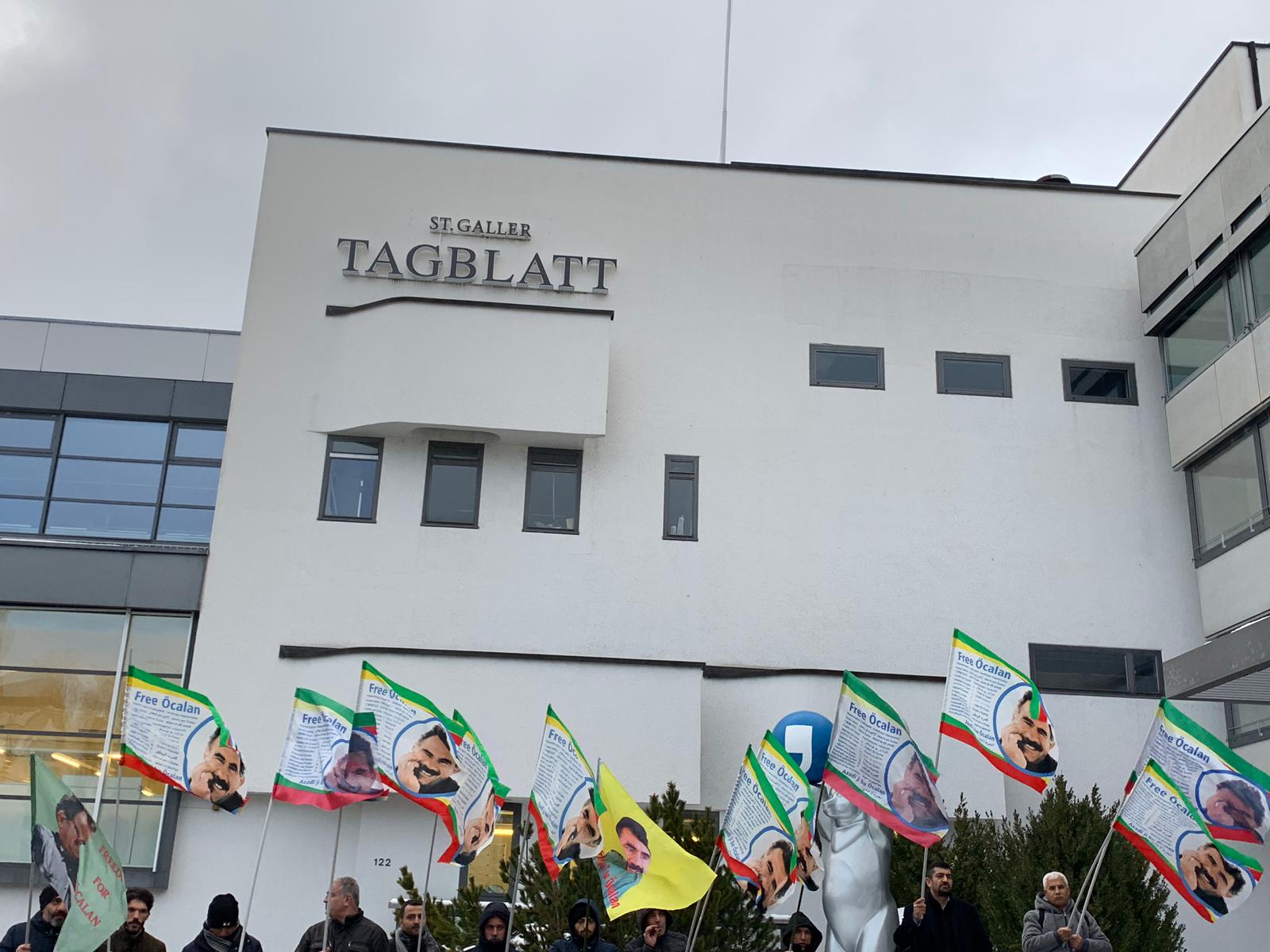 Tevgera CIwanên Şoreşger aktivisti gençler öncülüğünde bugün İsviçre’nin St. Gallen kantonunda bir eylem yapıldı. Eylemde gençler Tagblatt gazetesi binasının önünde Avrupa basının tecride karşı sessizliğini protesto etti.