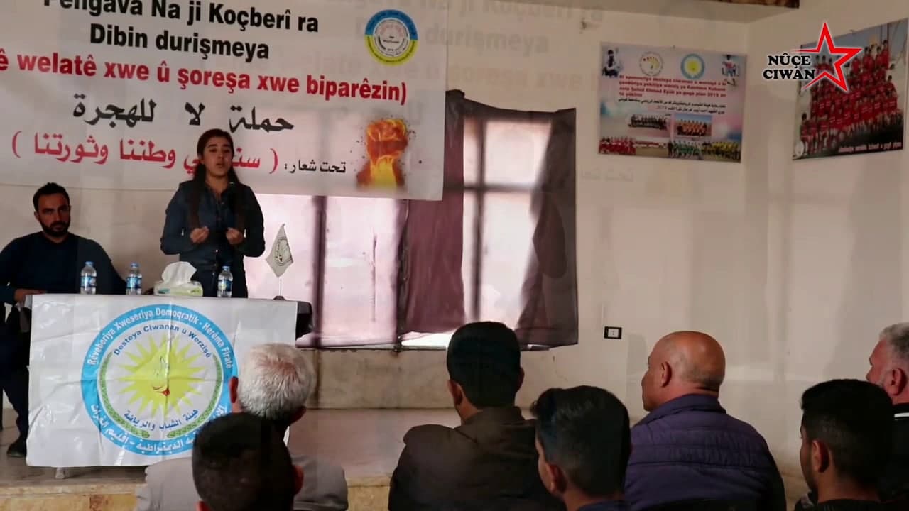 KOBANÊ – Suriye Tevgera Ciwanên Şoreşger, “Göç’e Hayır” hamlesi kapsamında Fırat bölgesinde “Ülkemizi ve devrimimizi savunacağız” başlıklı bir seminer düzenledi. Gençlik hareketi geçtiğimiz günlerde “Göç’e Hayır” şiarıyla bir hamle başlatarak göçün önüne geçmek için eylem ve etkinliklerini başlattı.