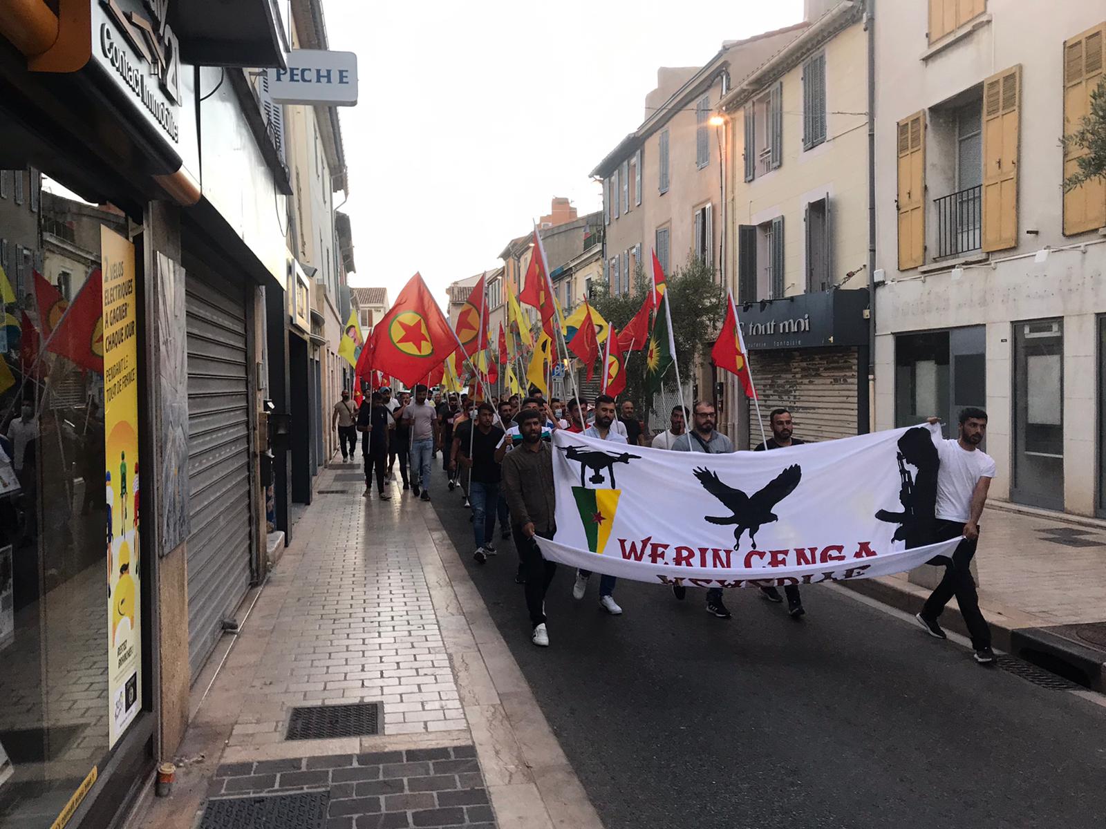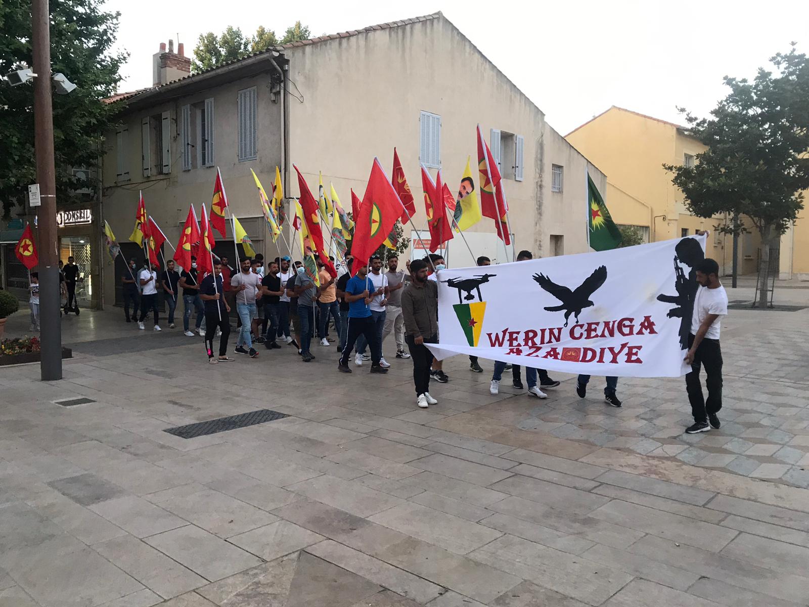 Fransa’nın Marsilya’kentine bağlı Marignane bölgesinde bir araya gelen TCŞ aktivisti gençler “Werin Cenga Azadiyê” hamlesi kapsamında bir yürüyüş gerçekleştirdiler.