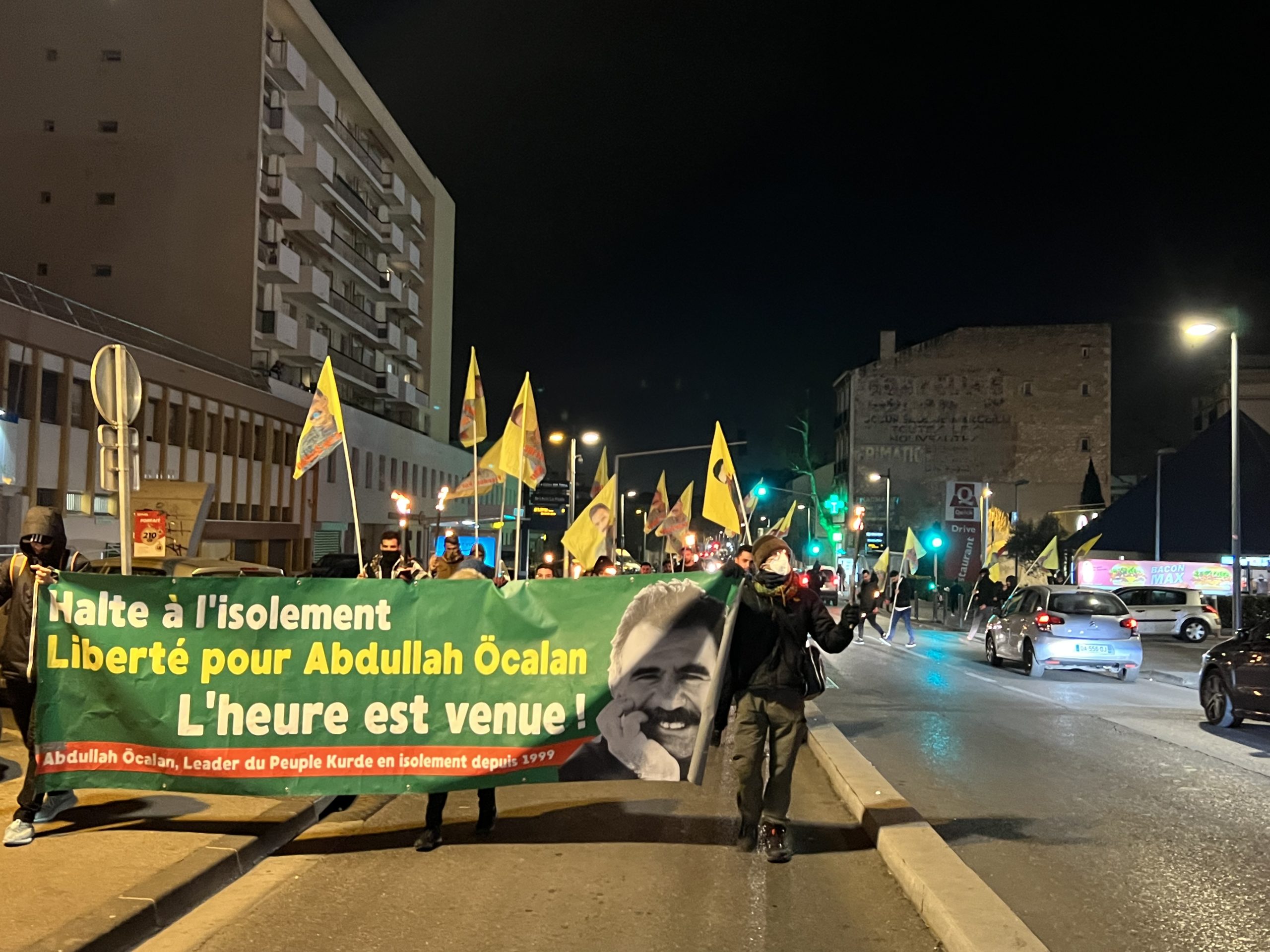 MARSİLYA – Tevgera Ciwanên Şoreşger (TCŞ) Marsilya, Halklar Önderi Abdullah Öcalan üzerindeki tecridi kırmak amacıyla Marsilya’nın Saint Louis bölgesinde meşaleli yürüyüş gerçekleştirdi.