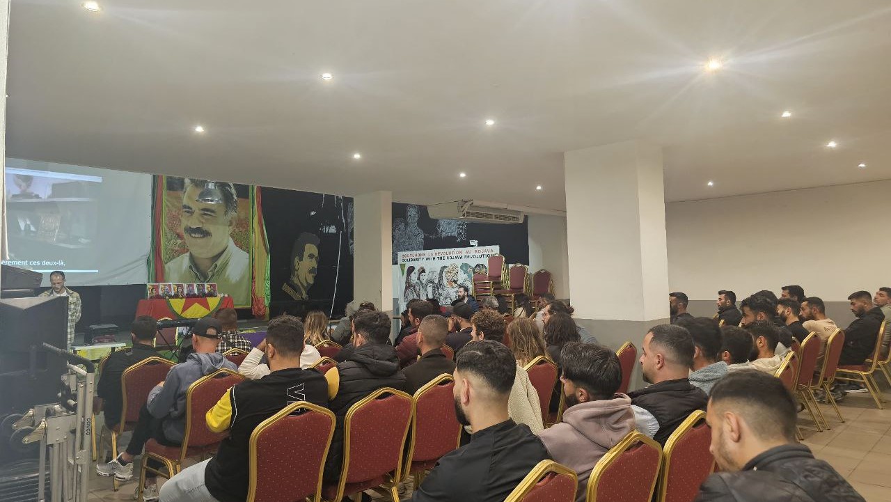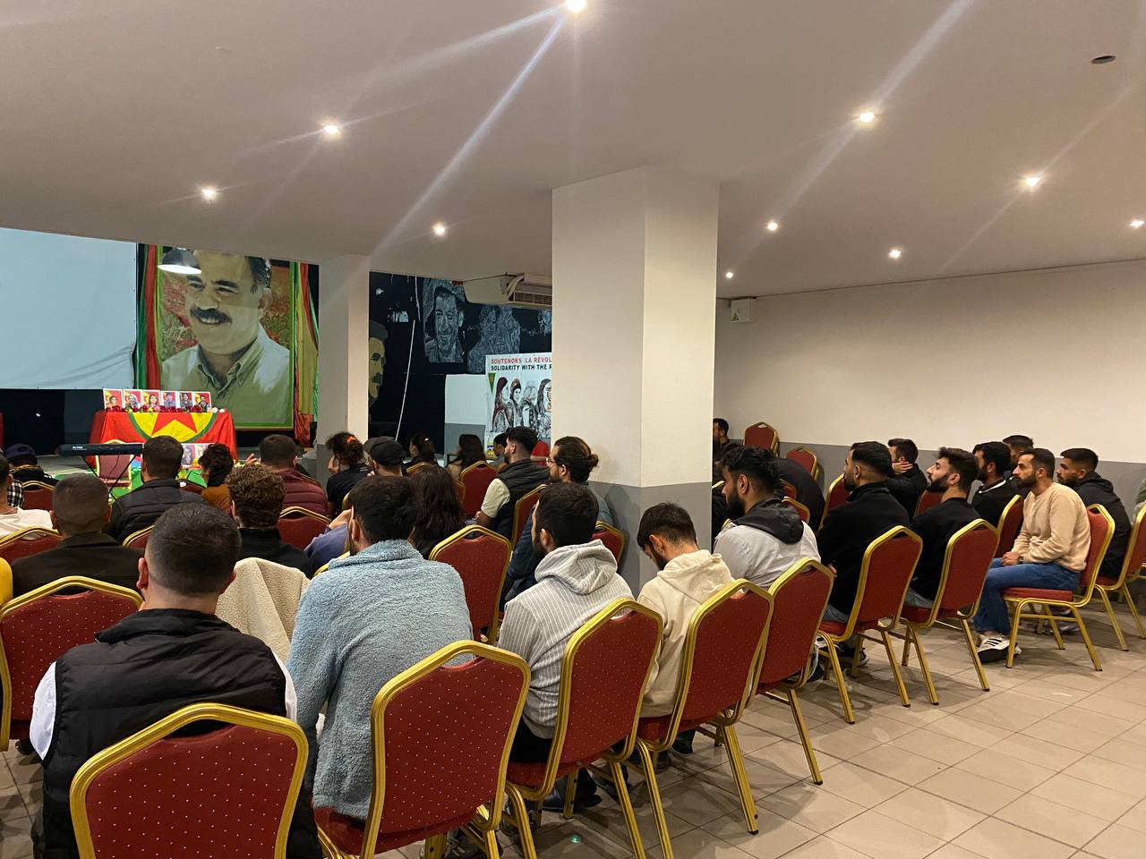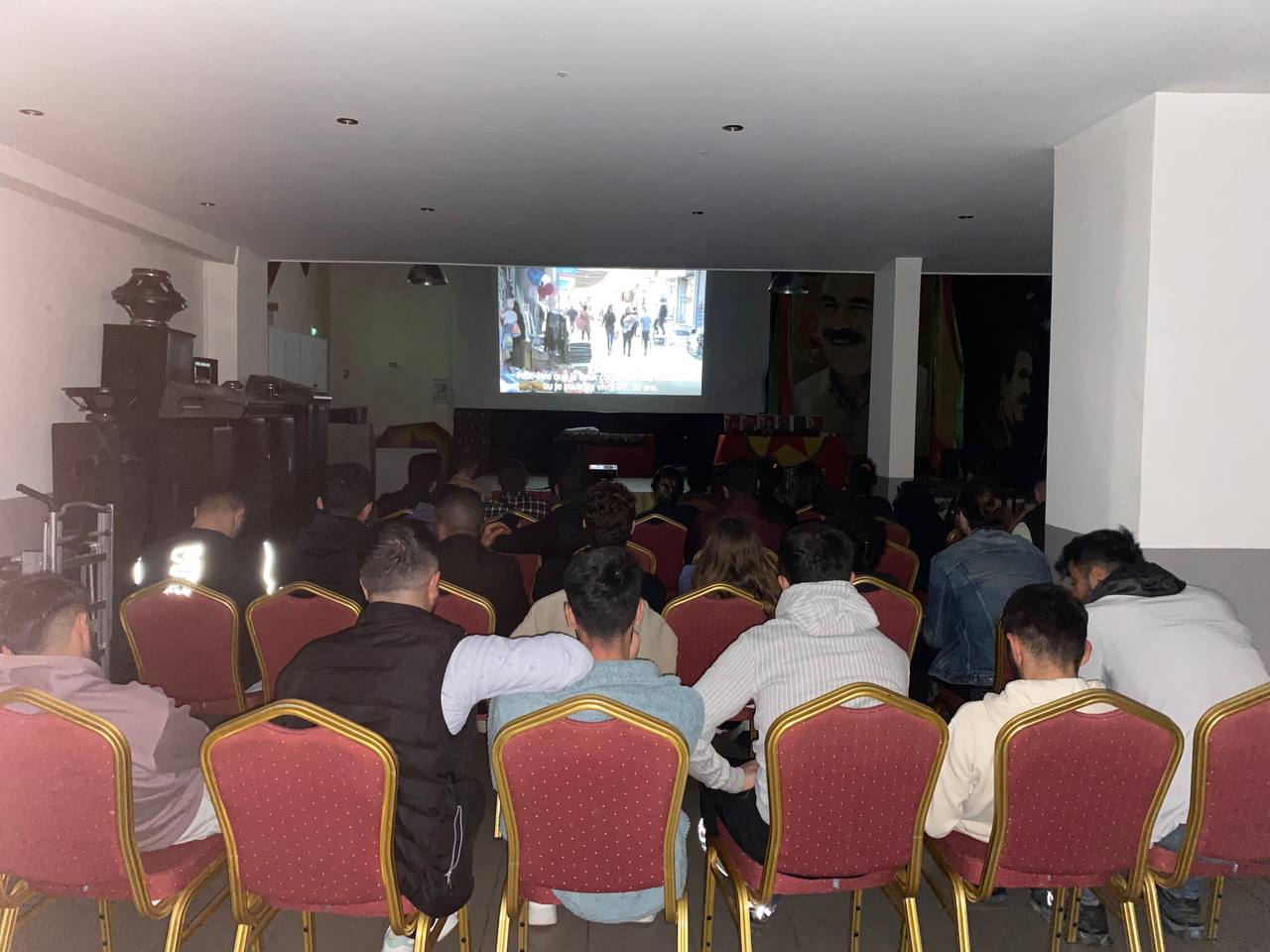 Yapılan konuşmaların ardından Kobanê ve Rojava savaşını anlatan bir sinevizyon izlendi. Sık sık “Bijî Serok APO” ve “Bijî Berxwedana Rojava” sloganlarıyla Rojava’daki direniş selamlandı.