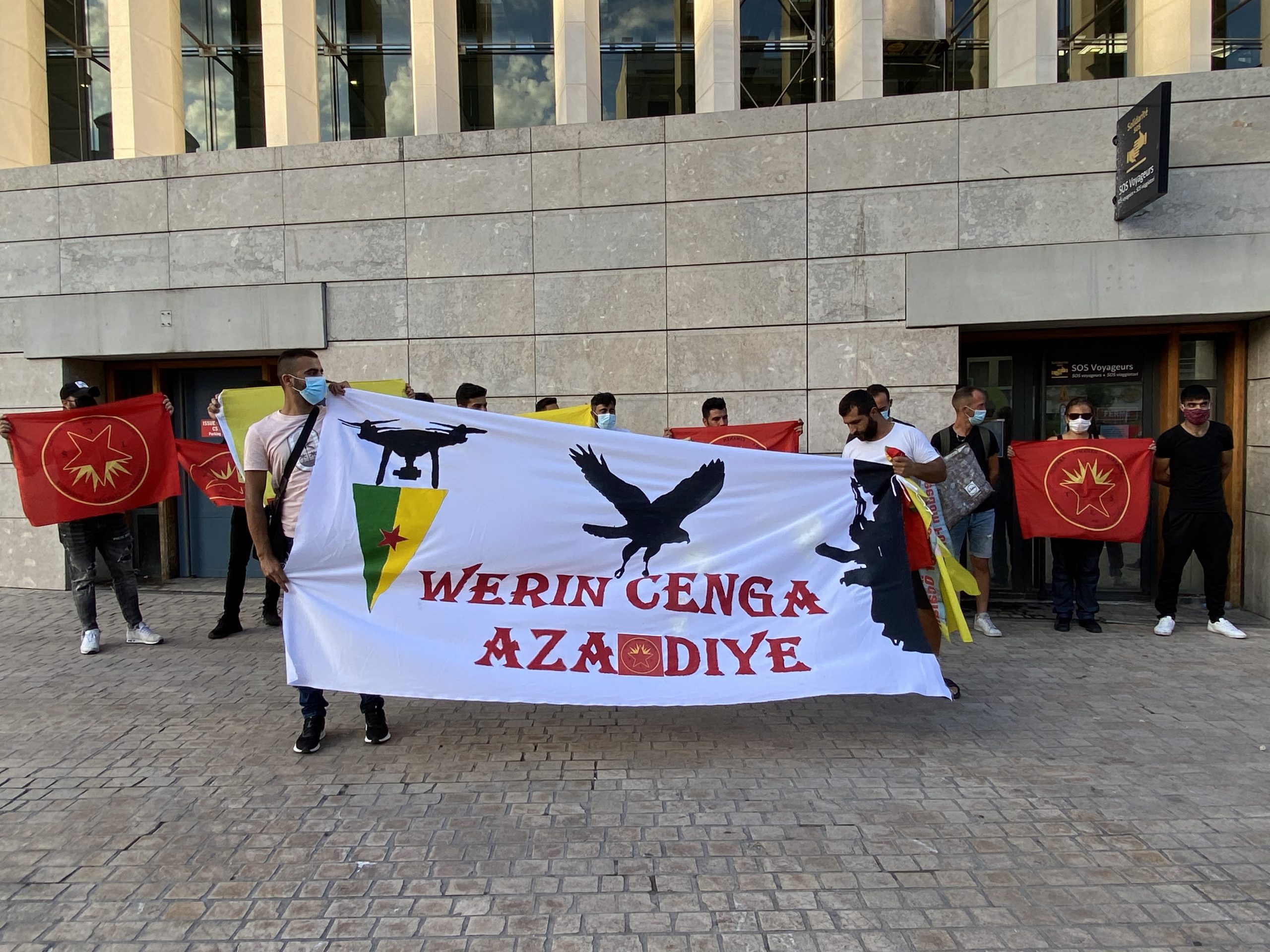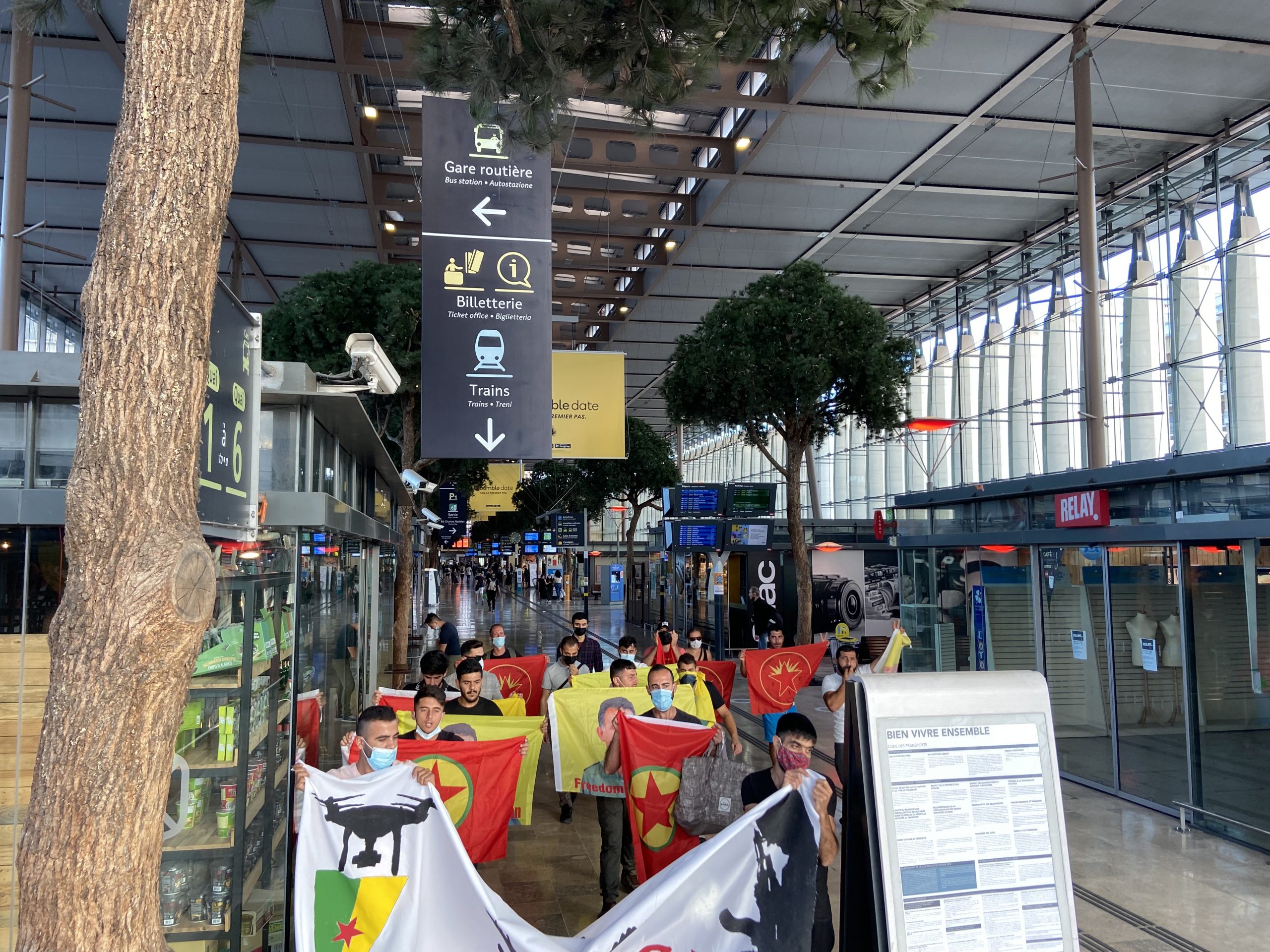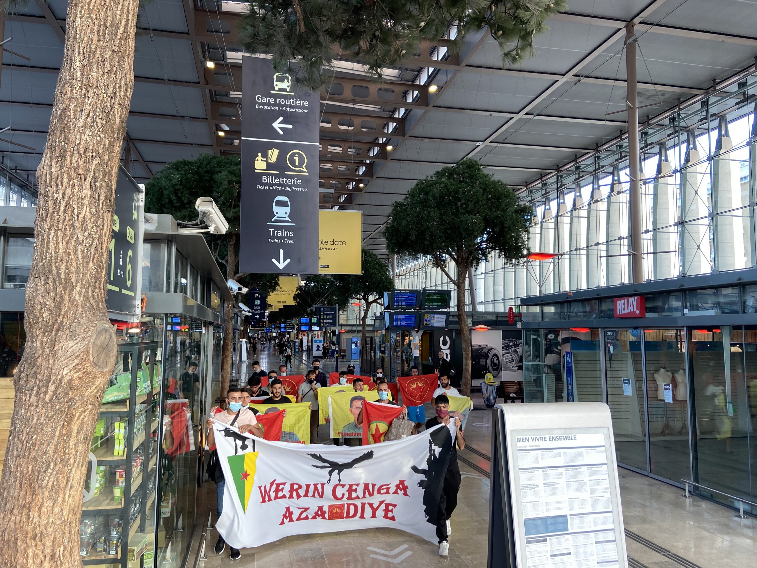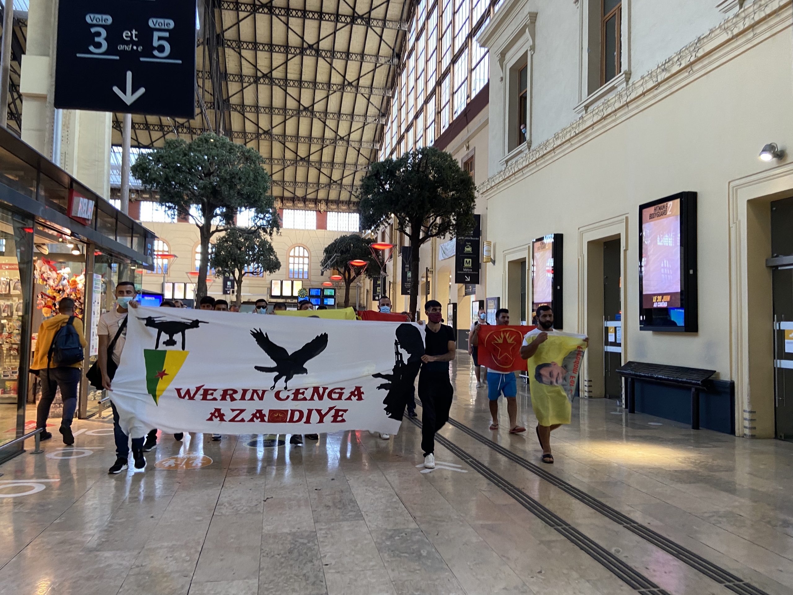 MARSİLYA – Marsilya merkezi tren istasyonunda bir sivil itaatsizlik eylemi gerçekleştiren gençler, faşist Türk devletinin soykırımcı işgal saldırılarının sona ermesini talep etti.