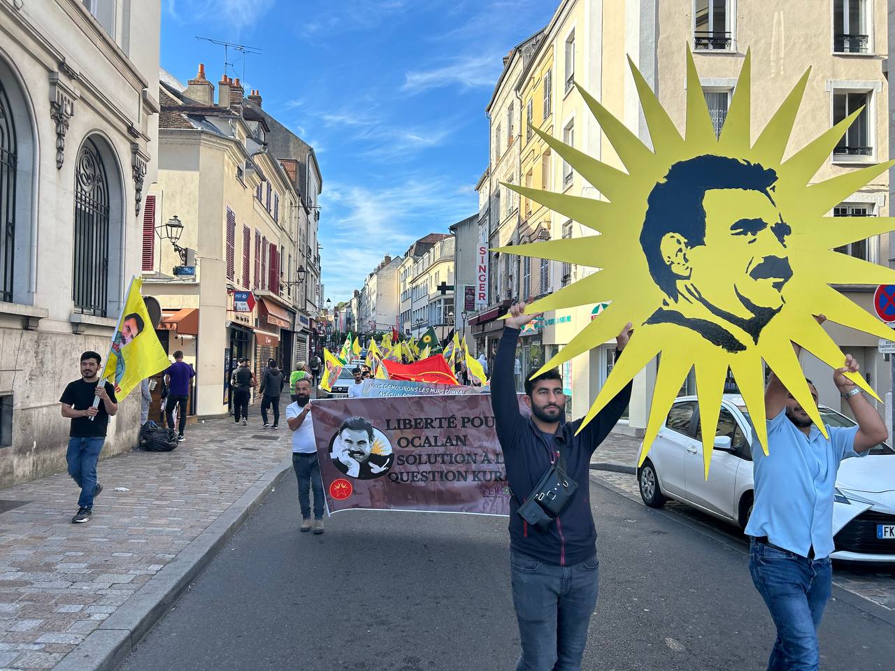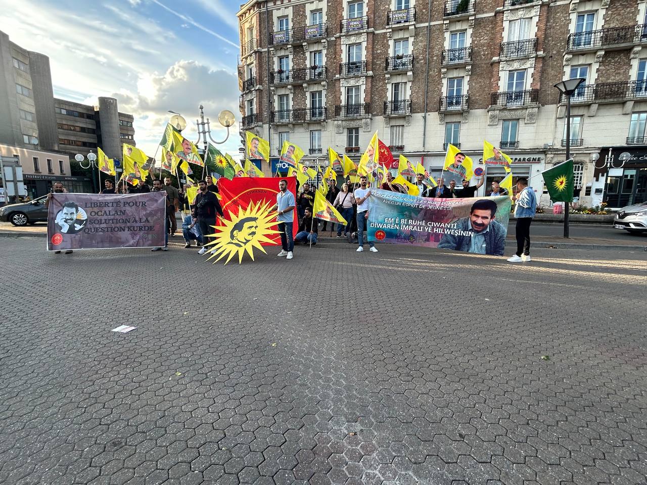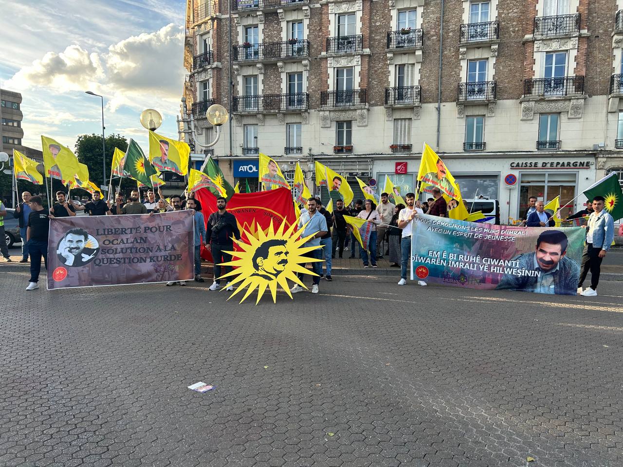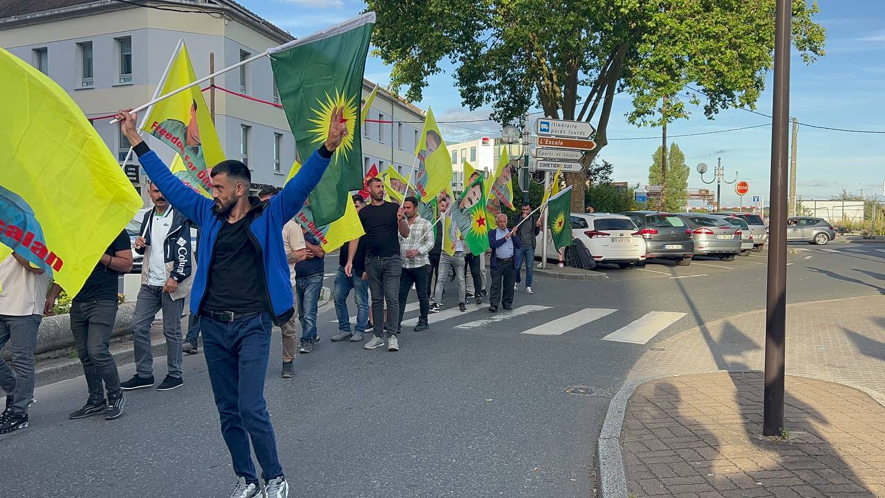 “Önder APO’ya Özgürlük Kürt Sorununa Çözüm” hamlesi kapsamında, Önder APO flamaları ile Melun meydanında yürüyüşe başlayan kitle KDP’nin faşist Türk devleti ile yapmış olduğu kirli işbirlikçiliğine “Bimre Xiyanet Bijî PKK” (İhanete ölüm yaşasın PKK) sloganları ile tepki gösterdi.
