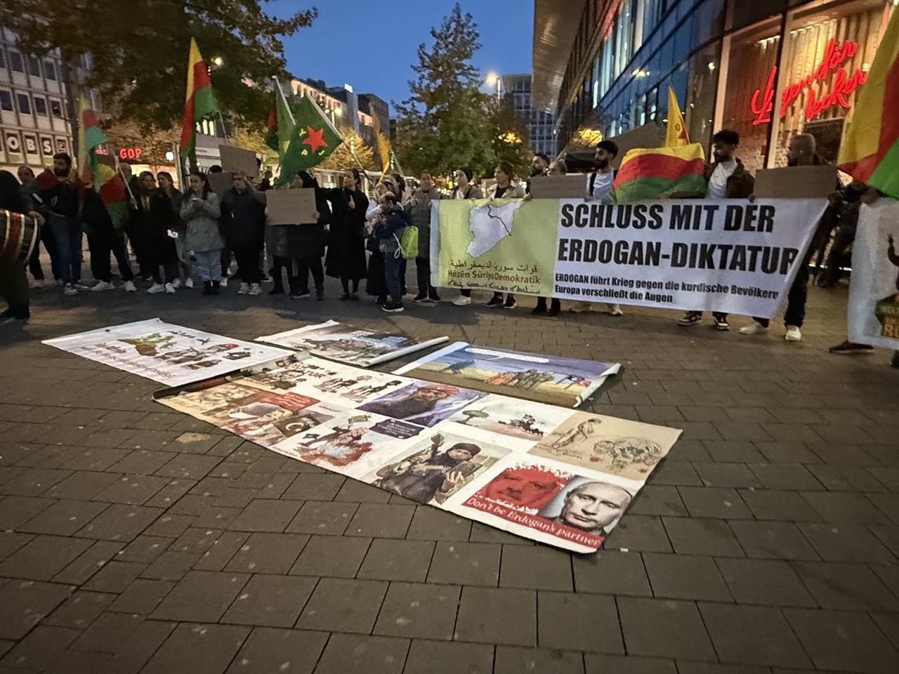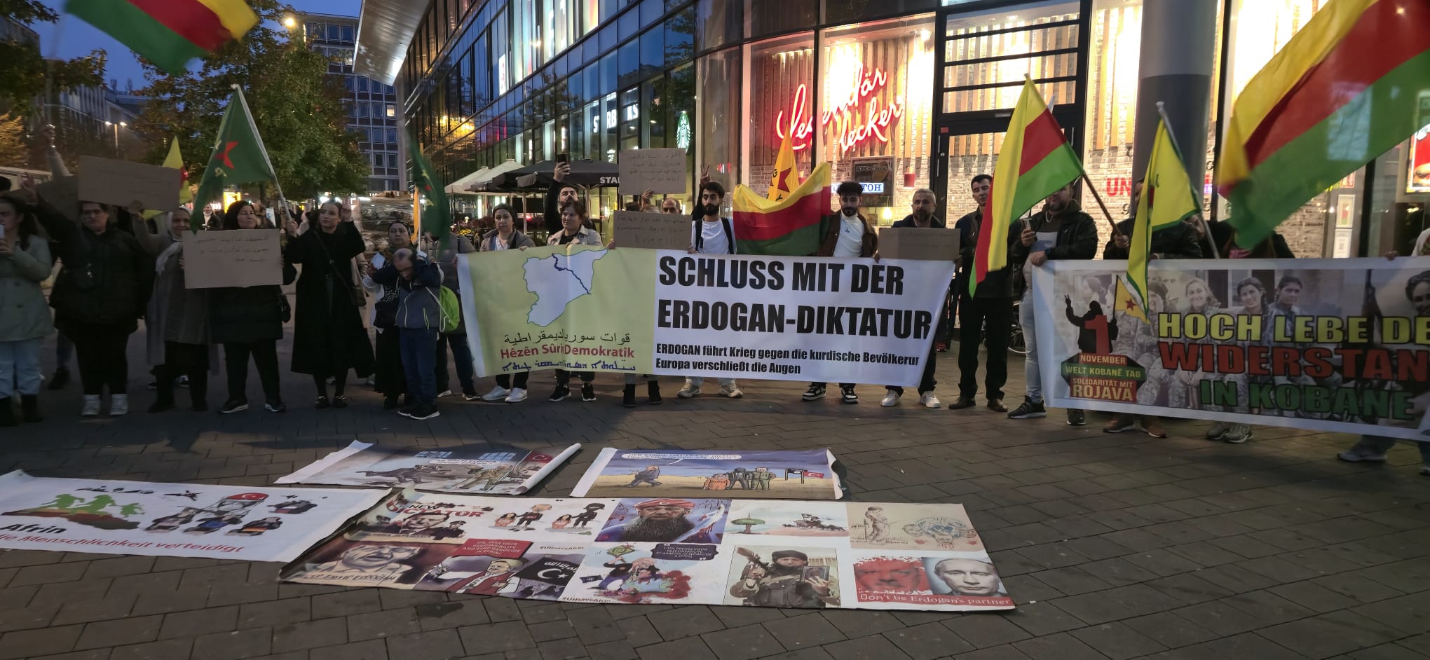 Konuşmaların ardından Almanca açıklama da yapıldı. Eylem, “Şehîd Namirin”, “Bijî Berxwedana Rojava” ve “Bijî Berxwedana QSD” sloganlarıyla sona erdi.
