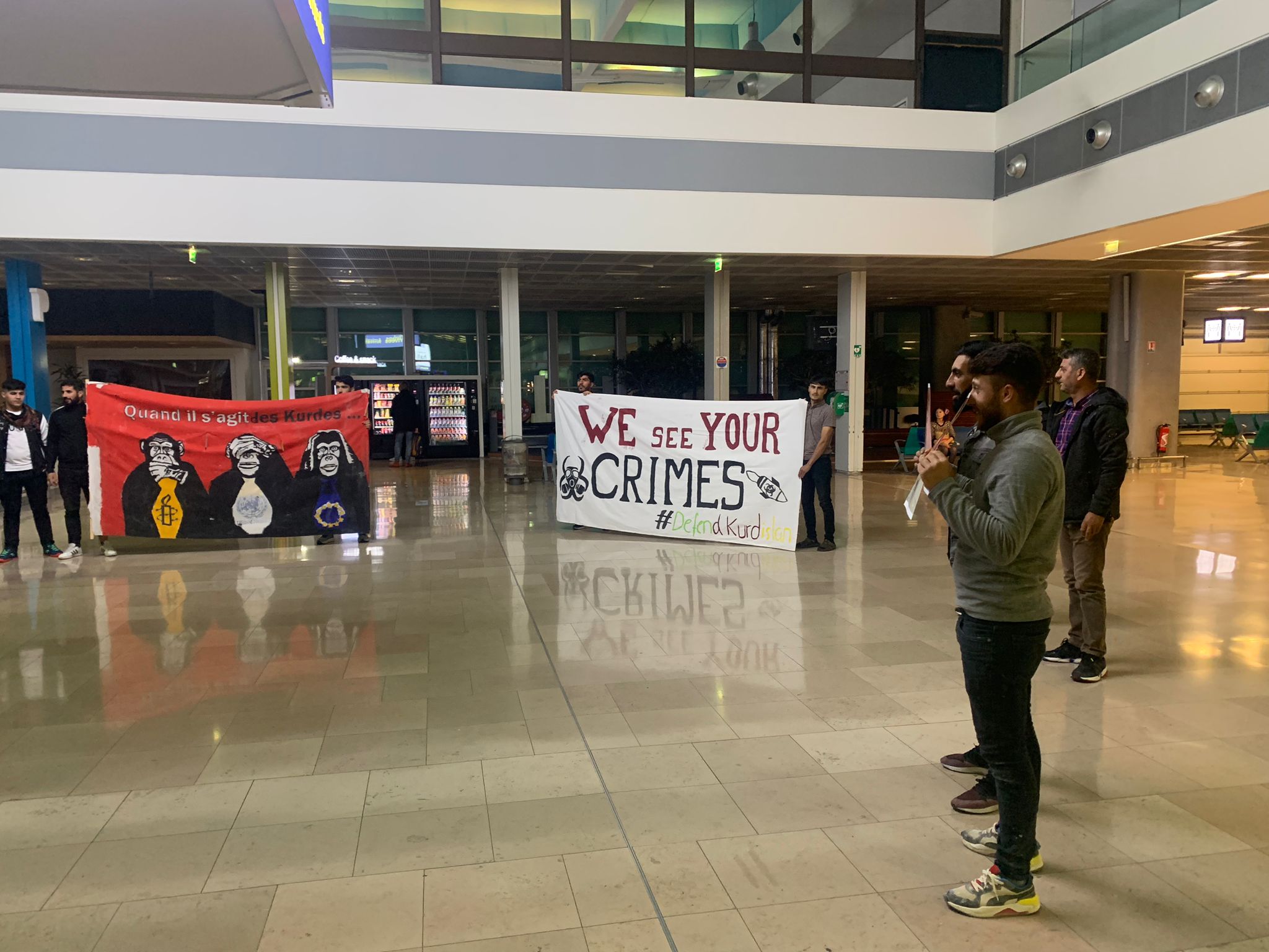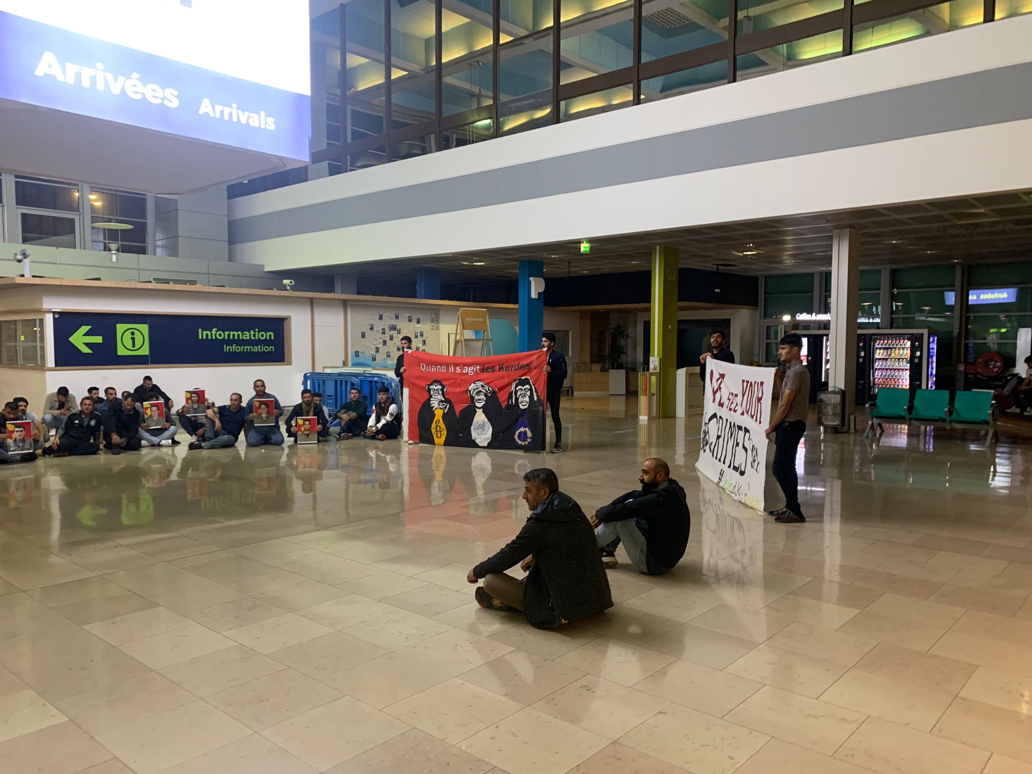 Marsilya’nın Marignane ilçesinde 18 Ekim tarihinde TCŞ gençliği ve Marignane genel meclisi gece geç saatlere kadar merkez hava alanında gerilla eylemleri kapsamında oturma eylemi gerçekleştirdi