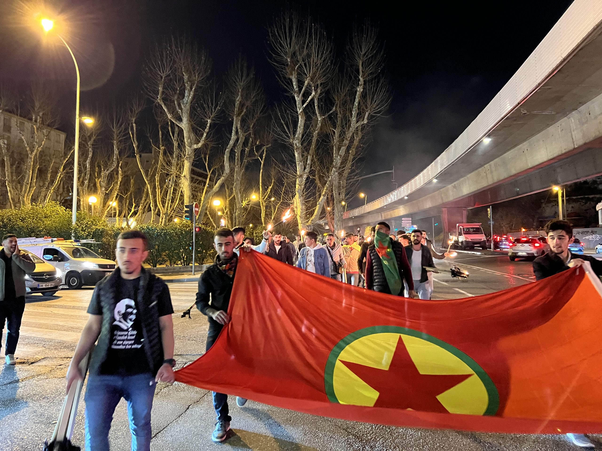 Sokak aralarında büyük bir PKK bayrağı taşıyan gençler aynı minvalde de Çerxa Şoreşe Marşını haykırdılar.