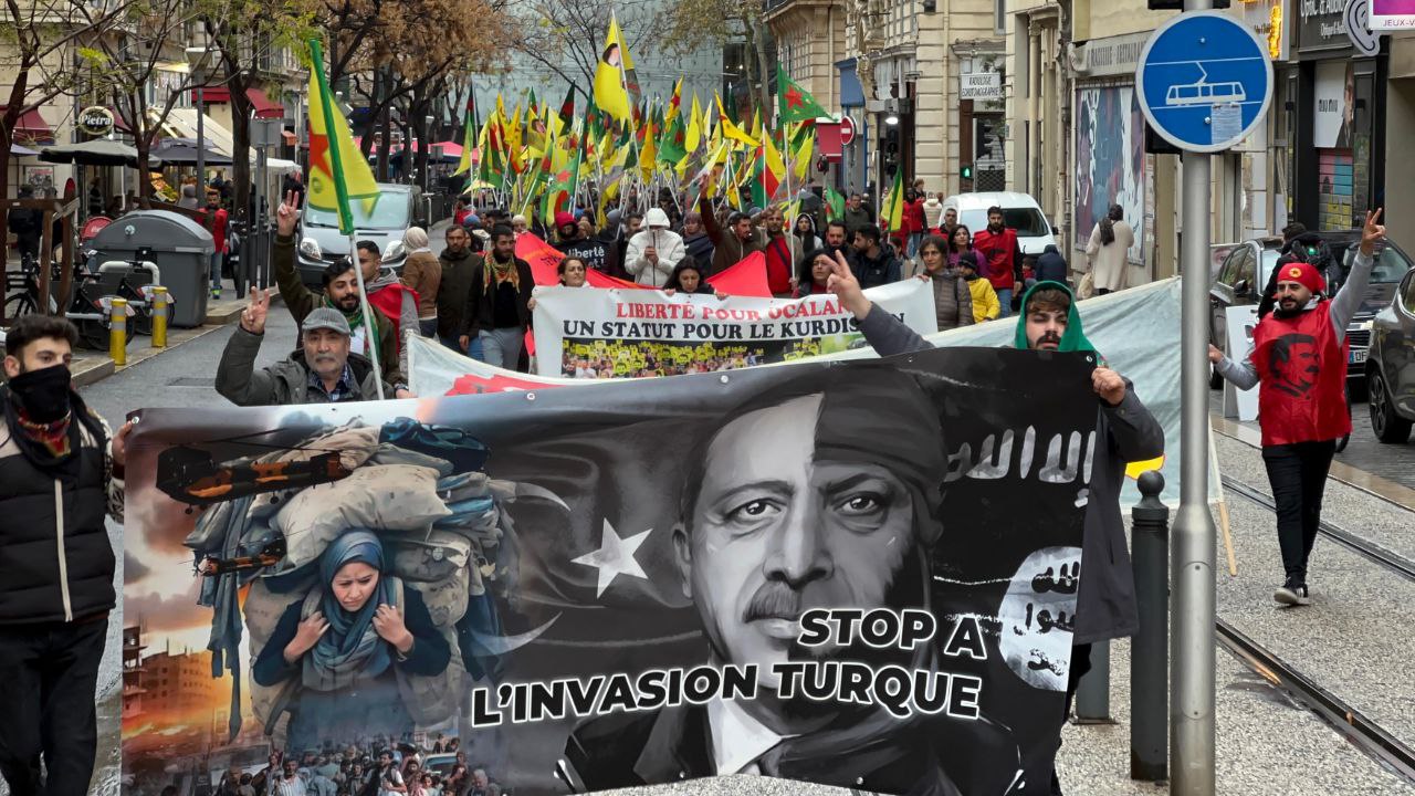 Marsilya Canebière meydanında başlayan yürüyüş, Birleşmiş Milletler (BM) binasına kadar devam etti. Eylem sırasında, Kürt halkının mücadelesine destek içeren sloganlar atıldı.