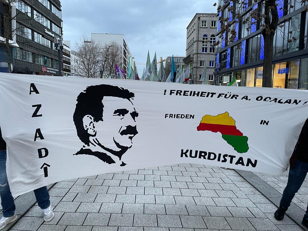 Yürüyüşe katılan 70 genç, "Öcalan'a özgürlük, Kürdistan'a barış" sloganları ve pankartlarla Stuttgart şehir merkezindeki halkın dikkatini mevcut duruma çekti.