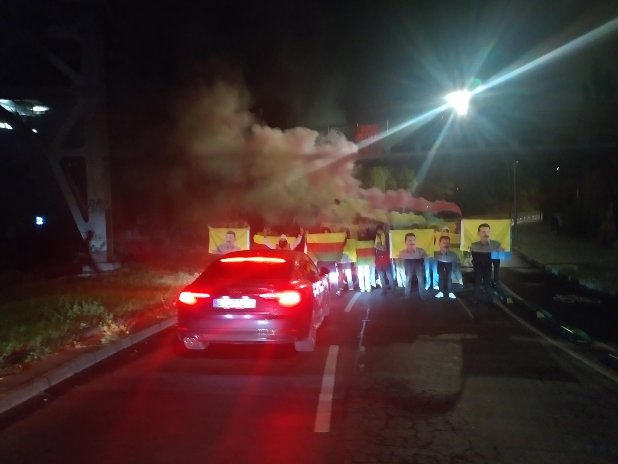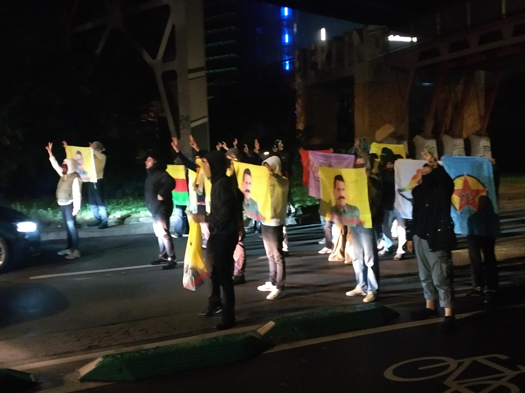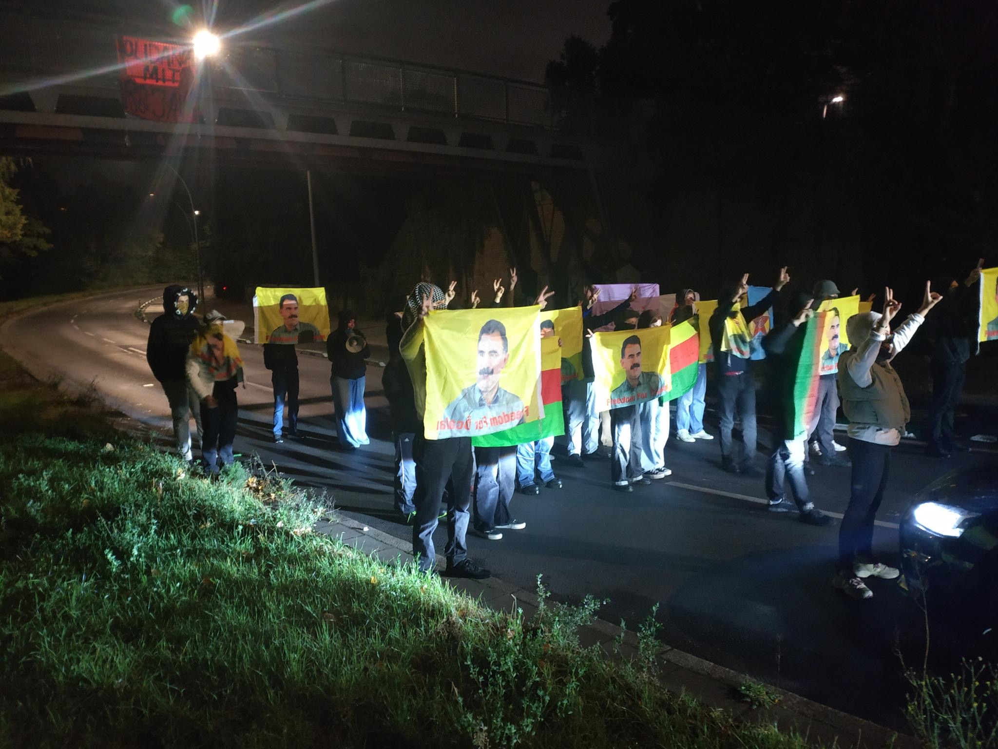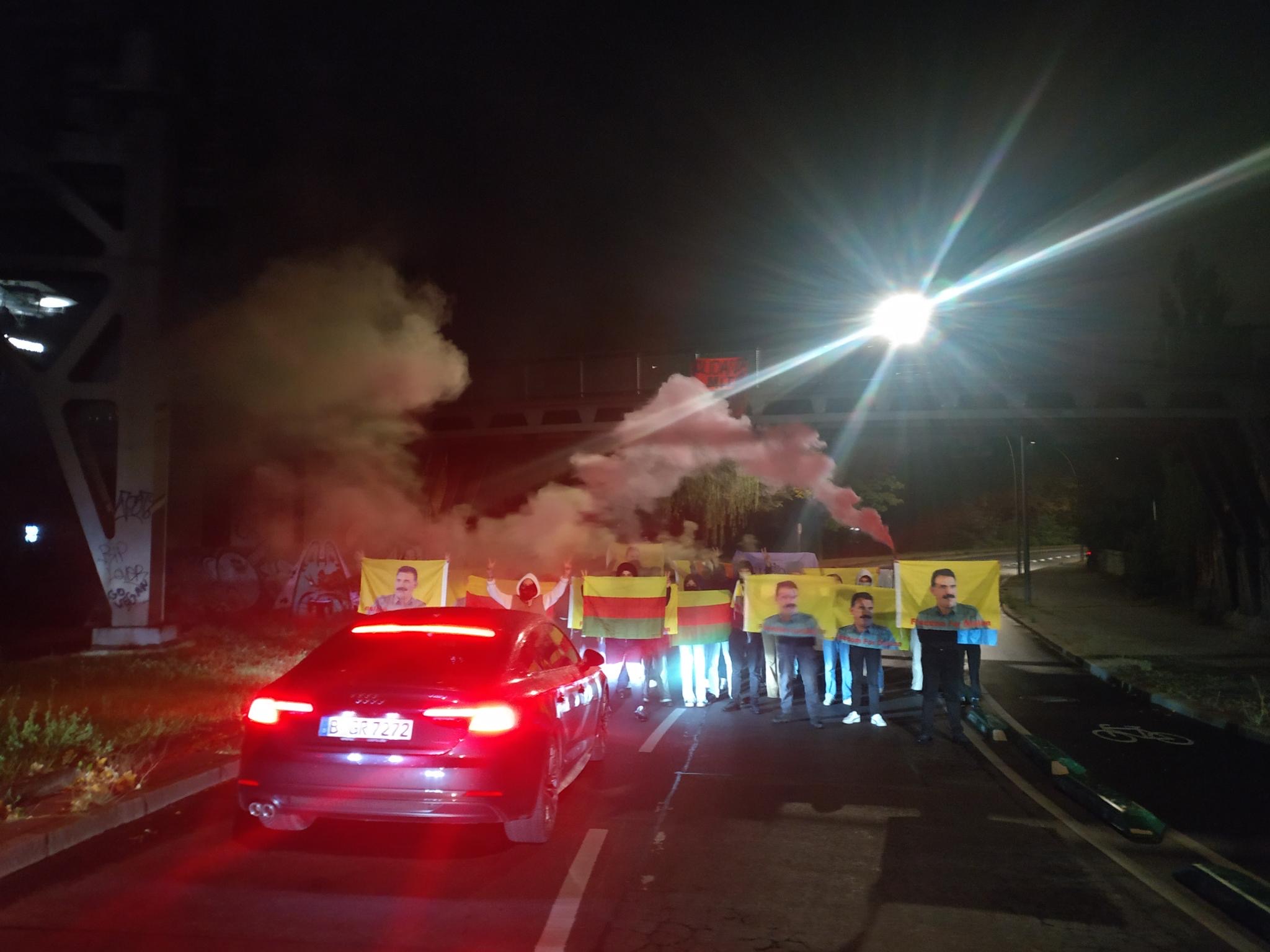 BERLİN – Yol kapatan TCŞ ve TekoJIN üyeleri, Önder APO posterleri ve sloganlar ile Rojava’ya dönük saldırılara karşı her zaman Kürt halkının öncü gücü olarak alanlarda olacaklarını belirtti. Gençler eylemde almanca basın açıklaması ve havai fişeklerle eylemlerine devam etti.