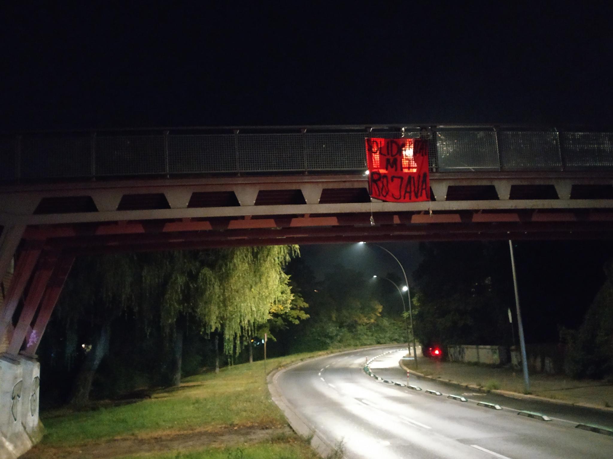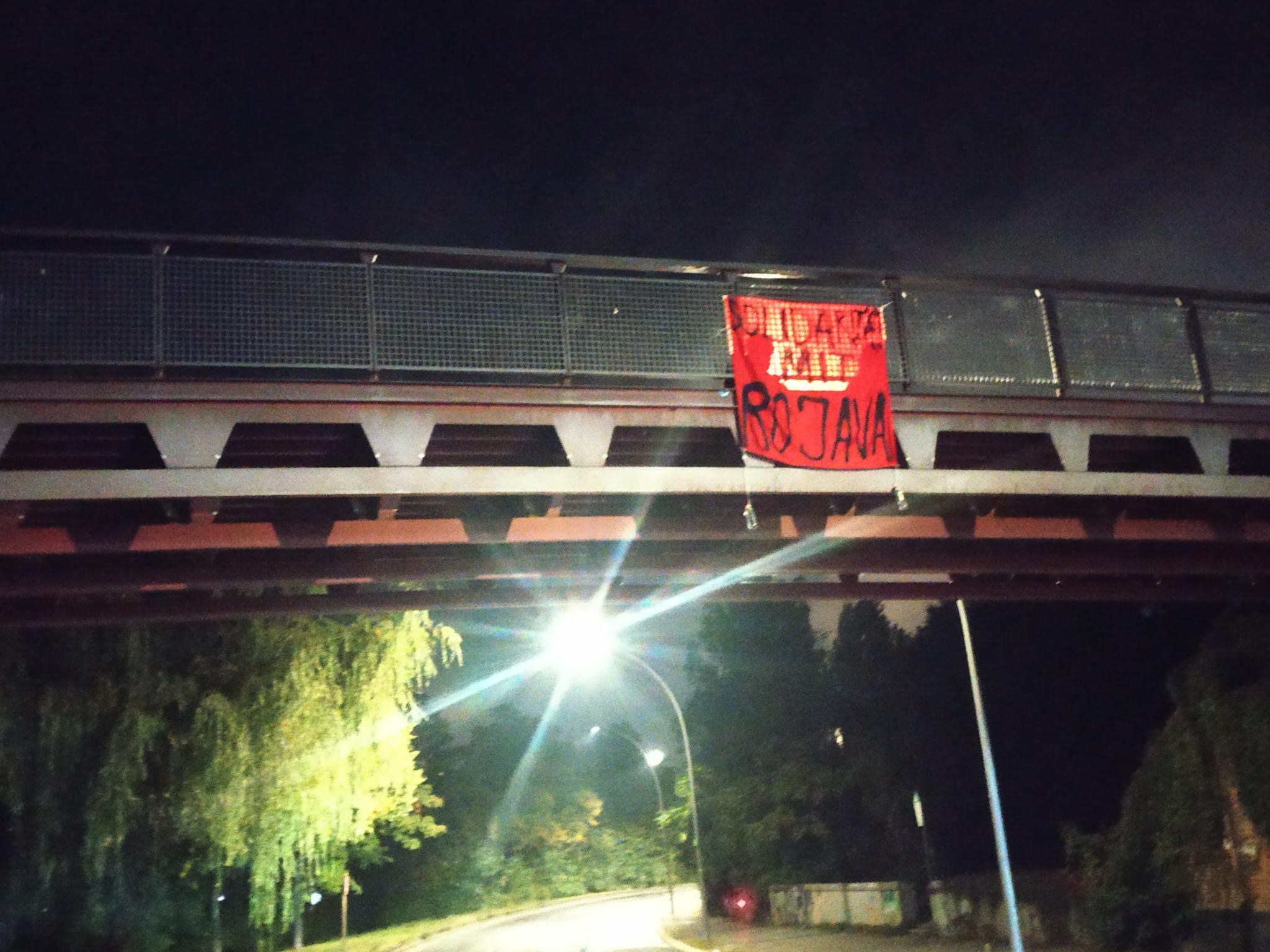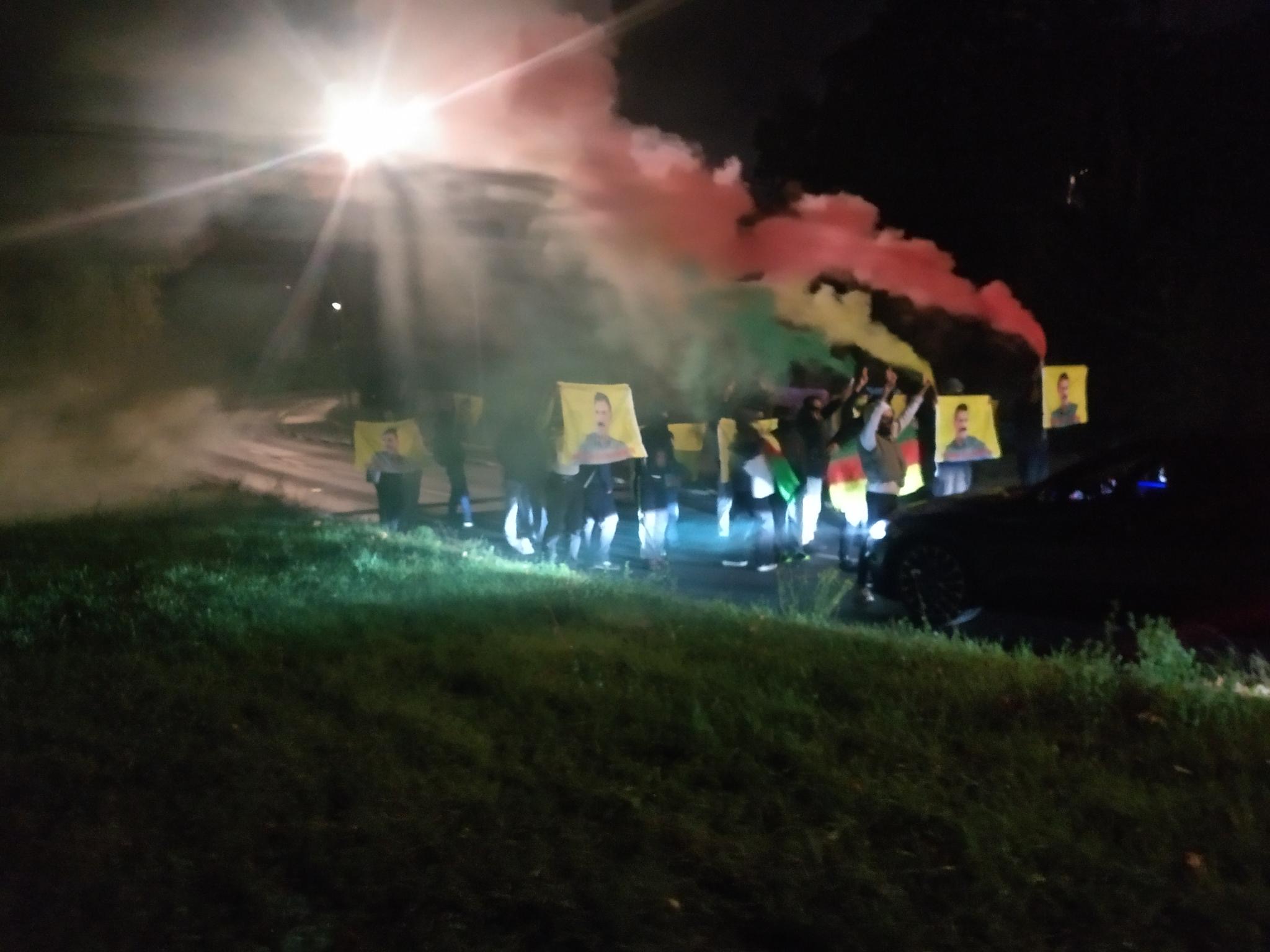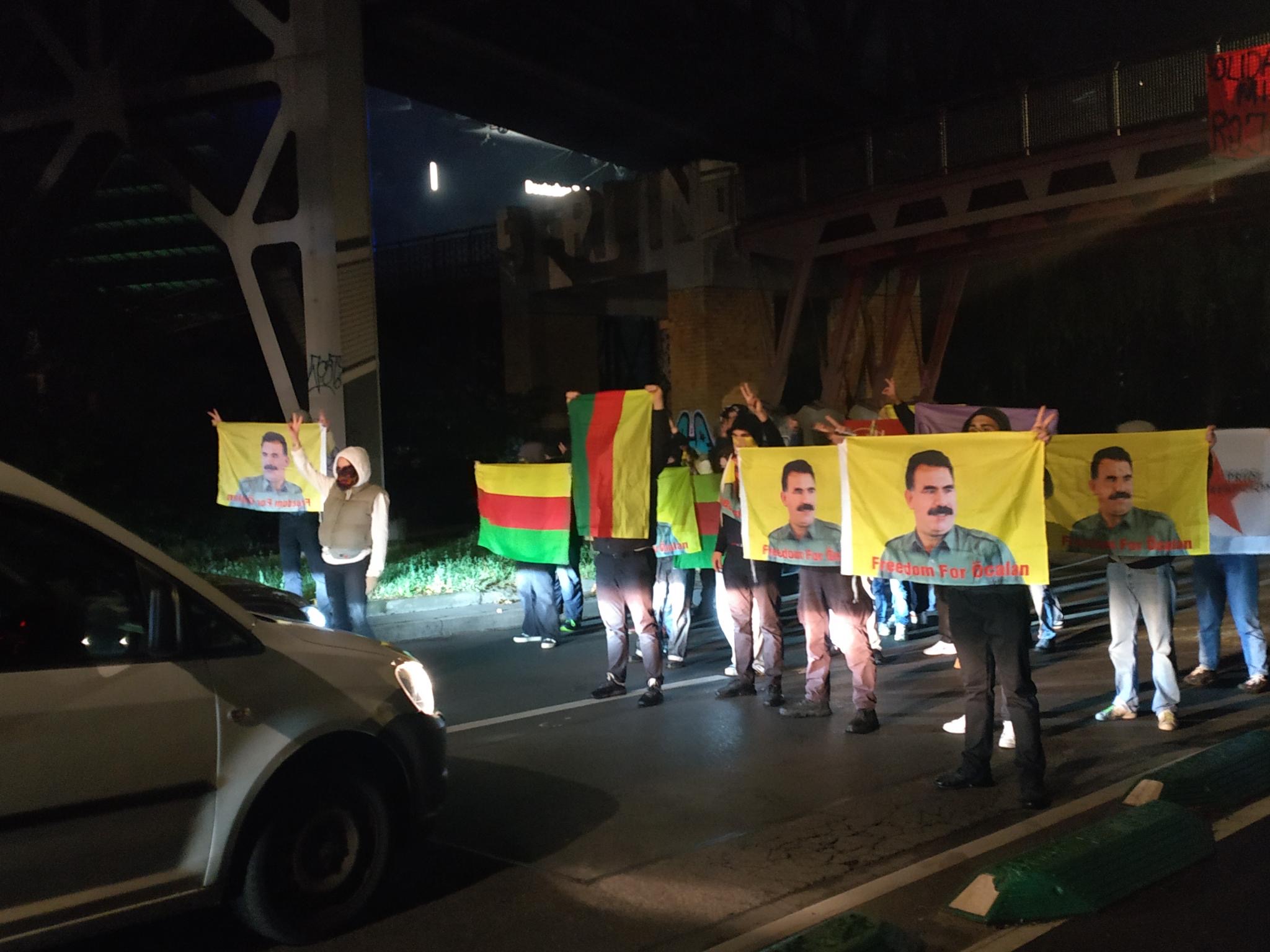 BERLİN – Yol kapatan TCŞ ve TekoJIN üyeleri, Önder APO posterleri ve sloganlar ile Rojava’ya dönük saldırılara karşı her zaman Kürt halkının öncü gücü olarak alanlarda olacaklarını belirtti. Gençler eylemde almanca basın açıklaması ve havai fişeklerle eylemlerine devam etti.