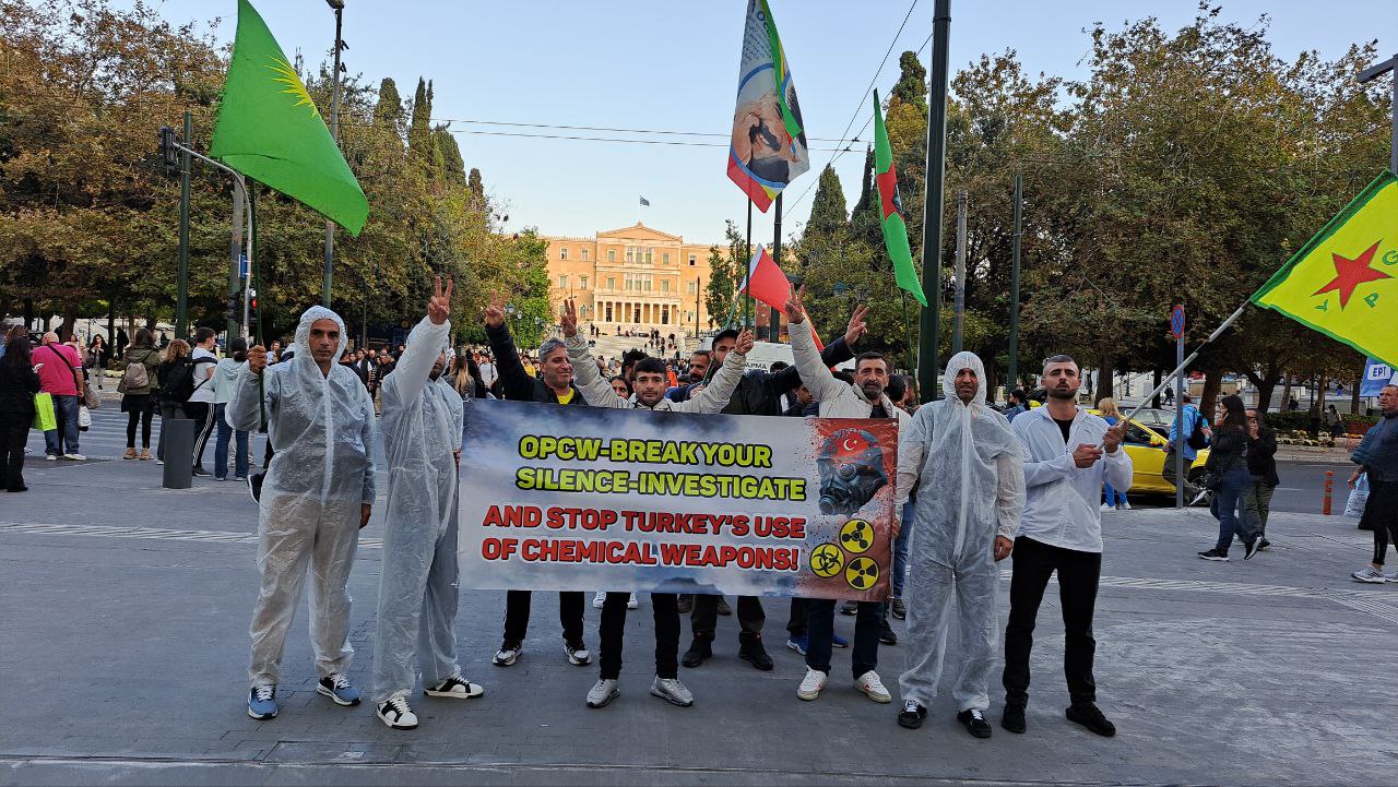 Eylem Syntagma meydanından “Bijî Serok Apo” , ” Bijî Berxwedana PKK”, ” Bijî Berxwedana Gerîla”, “Katil Türkiye” , “Katil Erdoğan” sloganları ile start aldı. Çok sayıda Yunanca sloganlar atılarak Sytagma tren garına yüründü.