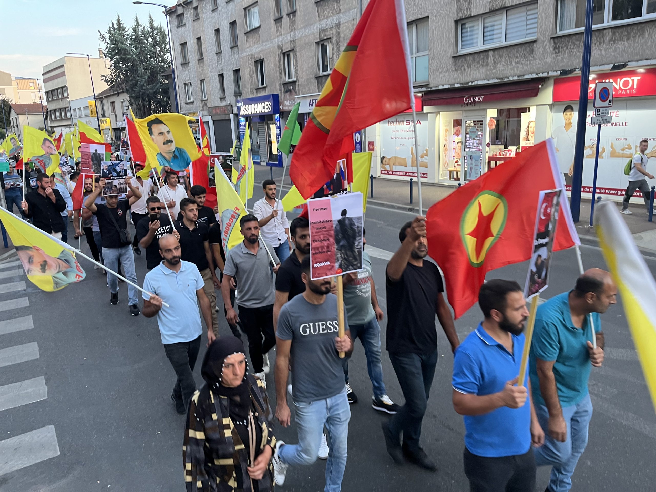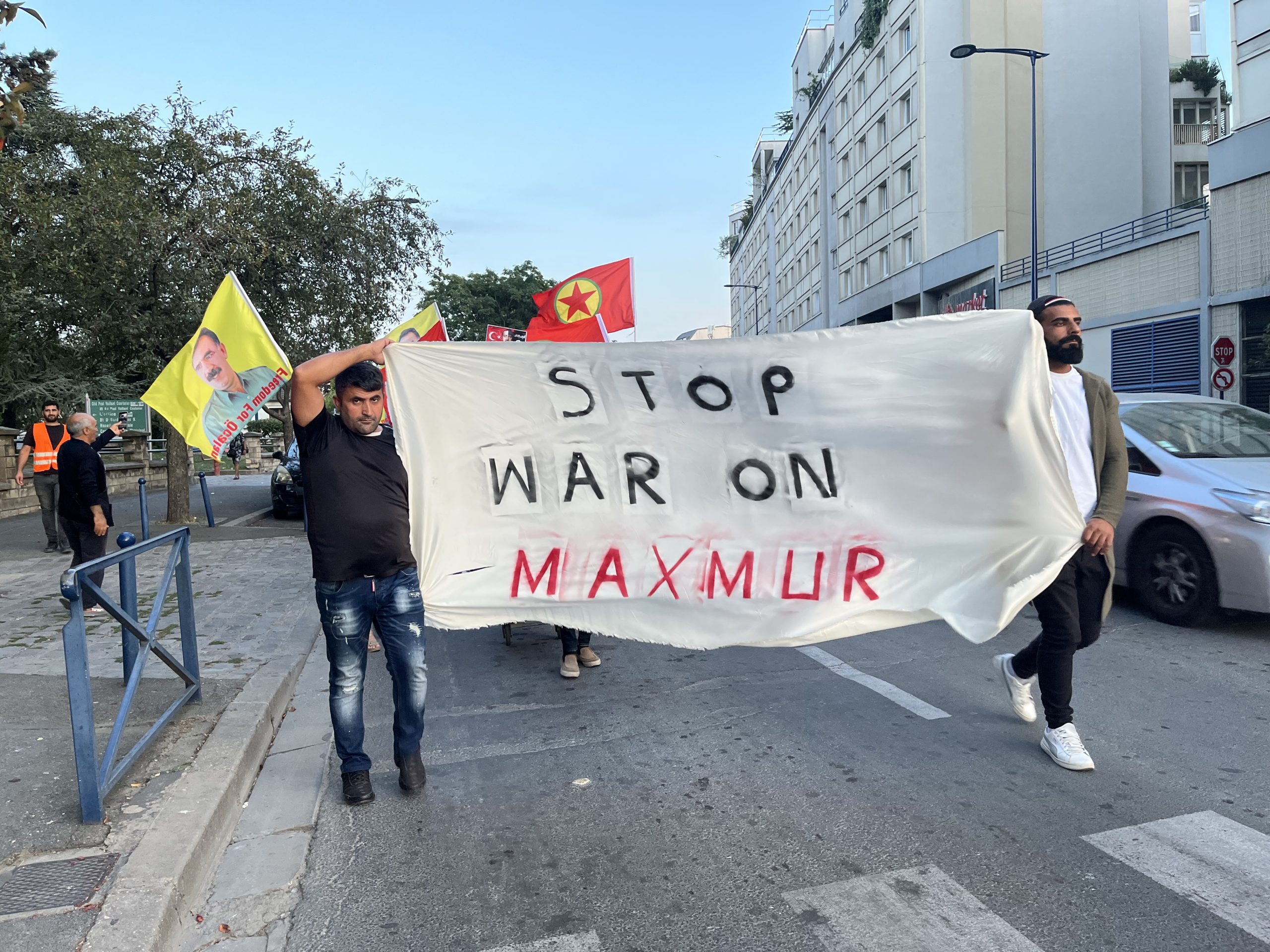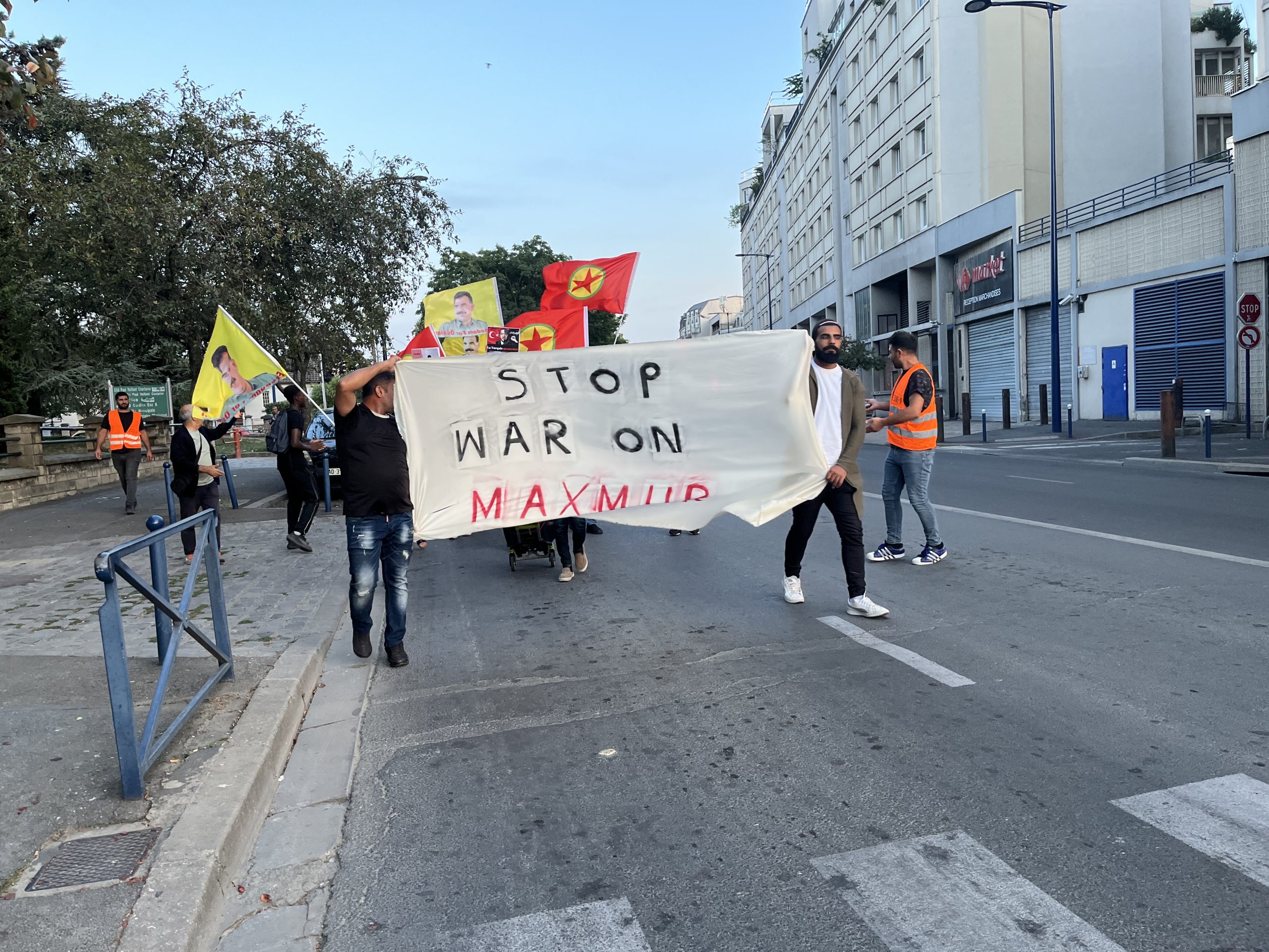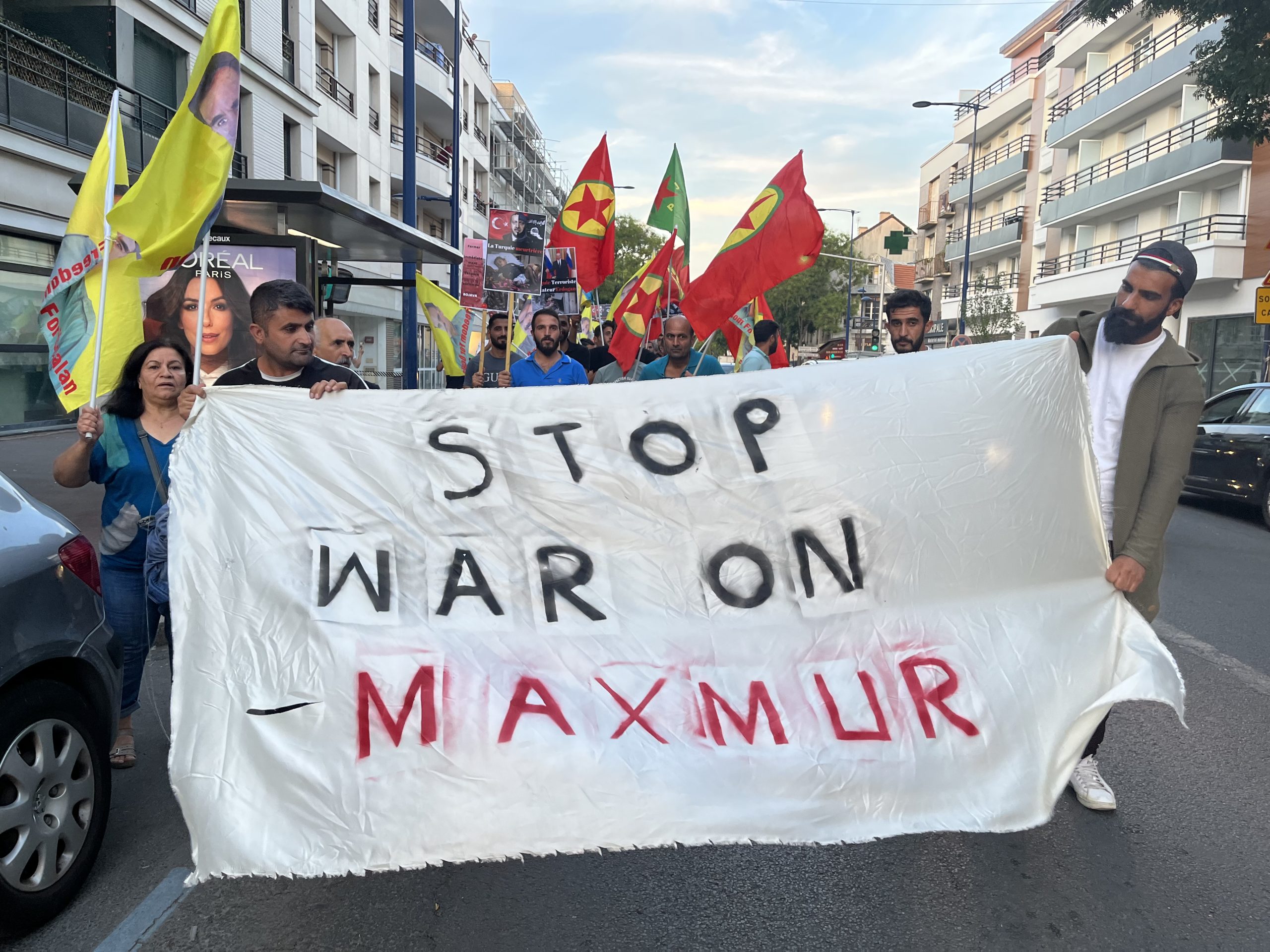 Drancy DKTM önünde başlayan yürüyüş Drancy Belediyesi’ne kadar “Stop War On Mexmur “ (Mexmur’da Savaşı Durdur) pankartıyla gerçekleşti. Sık sık “Katil Erdoğan “, “İşgalci TC”, “ Biji Berxwedana Mexmur” sloganları atıldı. Daha sonra TCŞ VE DKTM adına yapılan açıklamada “Kürt katliamını ve soykırımını hedefleyen işgalci Türk ordusunun Mexmur ve Şengal’e dönük gerçekleştirdiği saldırı Kürdistan halkı ve kazanımlarına topyekûn hedeflemektedir” denildi.